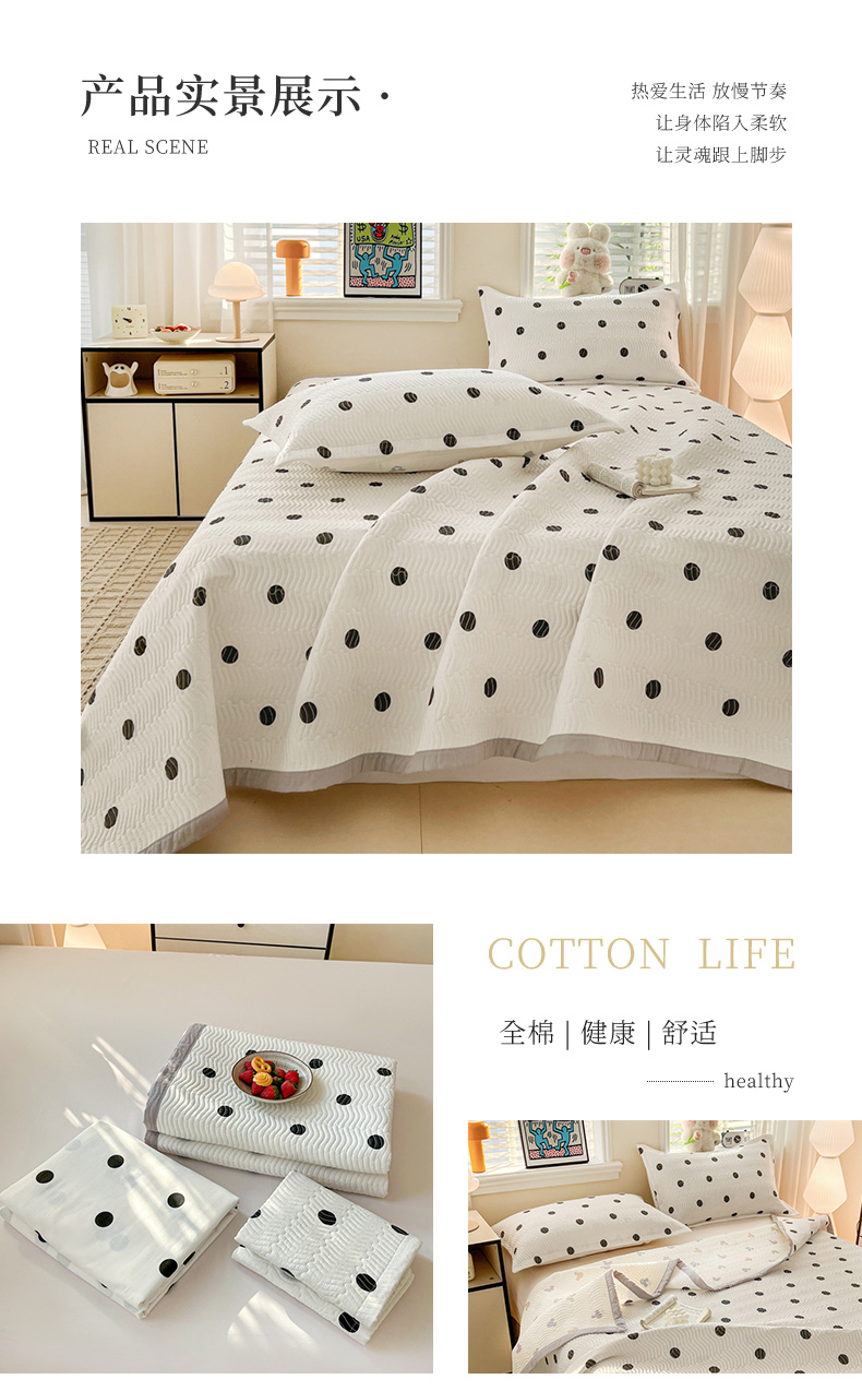 商品名称:梦精灵家纺 2026新款纯棉床盖四件套全棉绗缝夹棉防滑床单四季通用榻榻米单人学生宿舍 浪漫波点AA