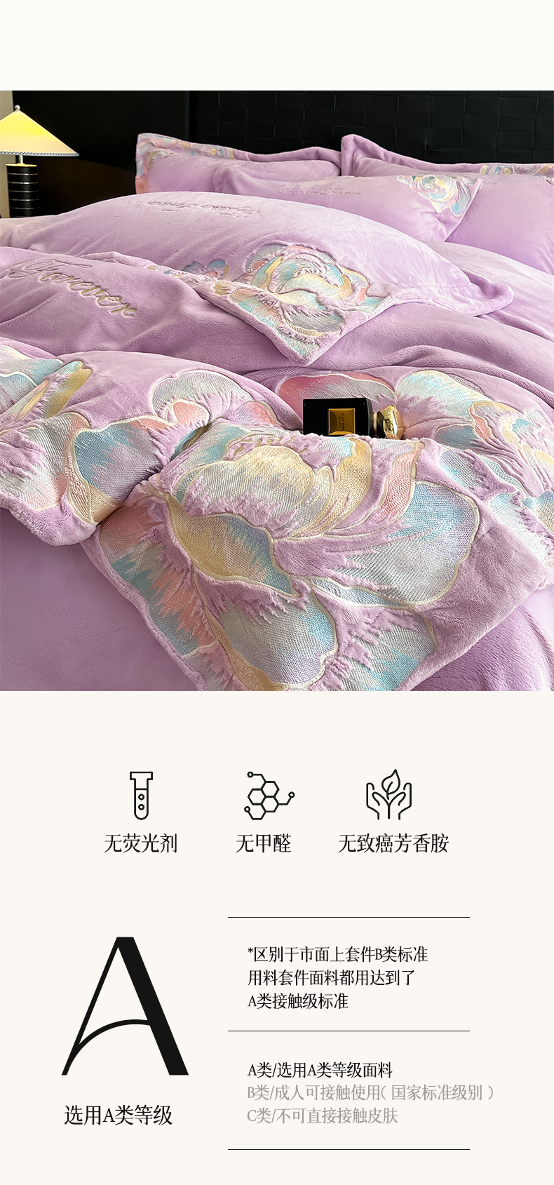 当前位置: 91家纺网 > 商品网购 > 床品套件 > 四件套 > 牛奶绒四件套 > 润锦云 2026新款大热款220克全消光刺绣牛奶绒四件套-向阳花开 向阳花开-樱花粉