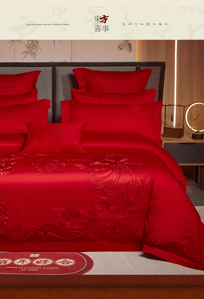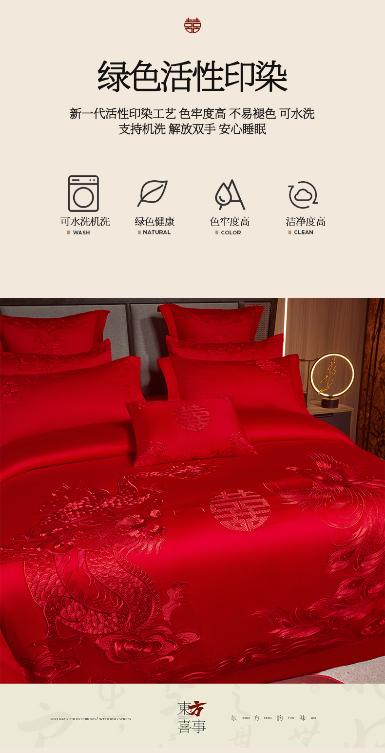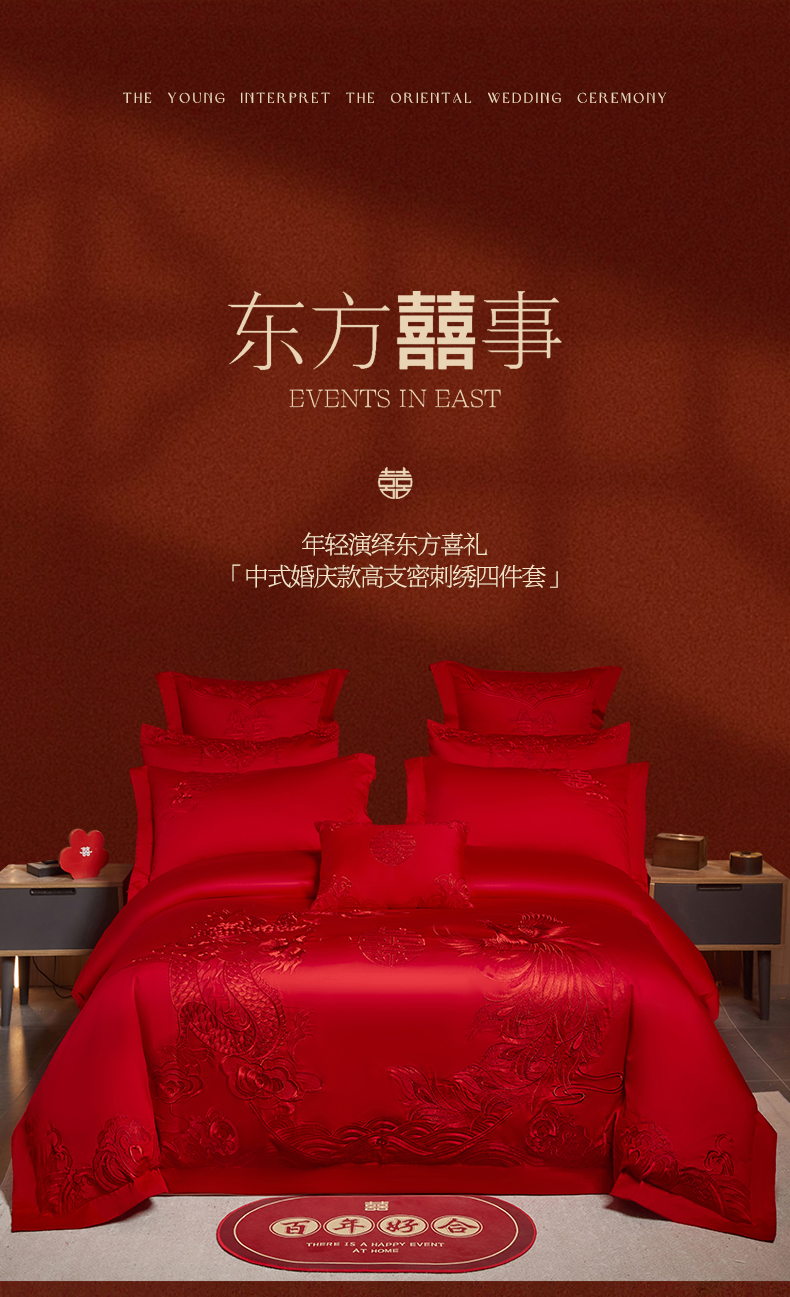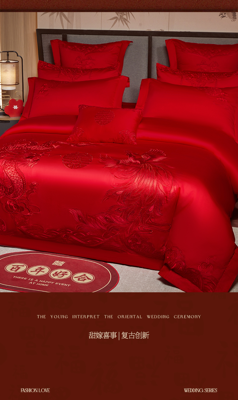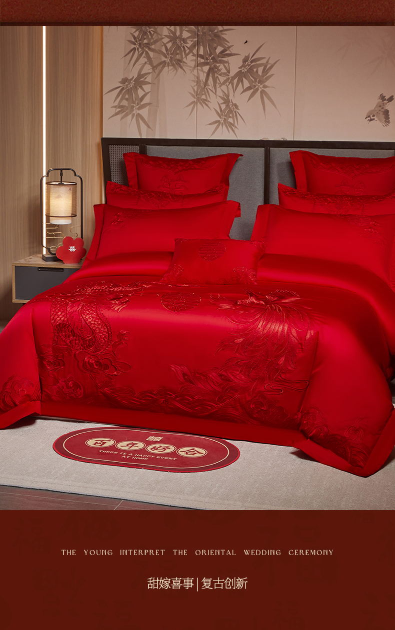 (总)润锦云 2026新款150克高克重中式婚庆款高支高密重工刺绣四件套