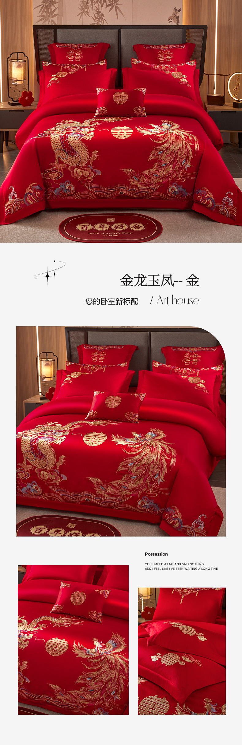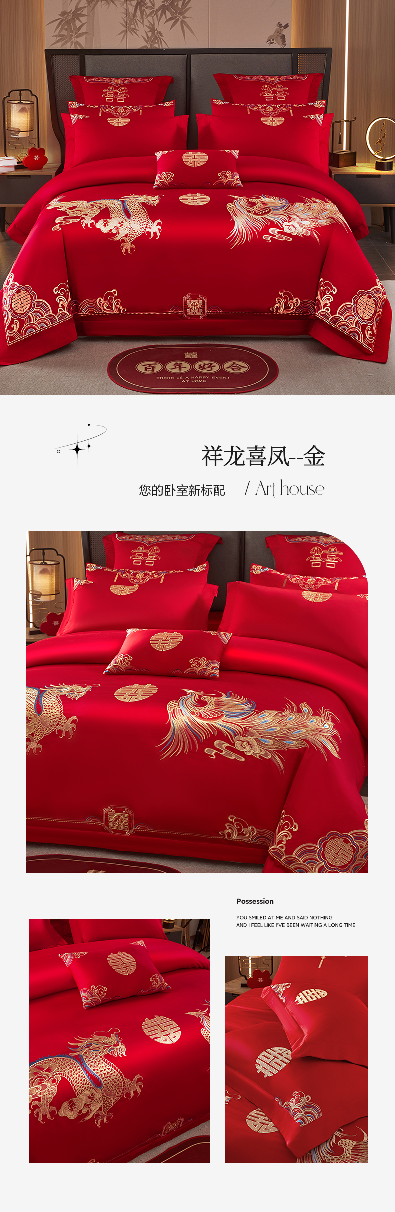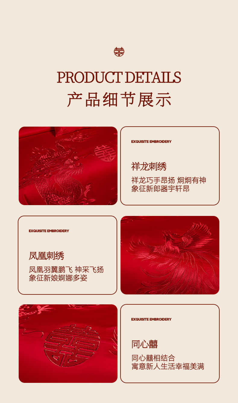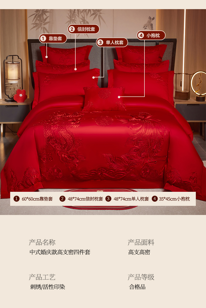 商品名称:(总)润锦云 2026新款150克高克重中式婚庆款高支高密重工刺绣四件套