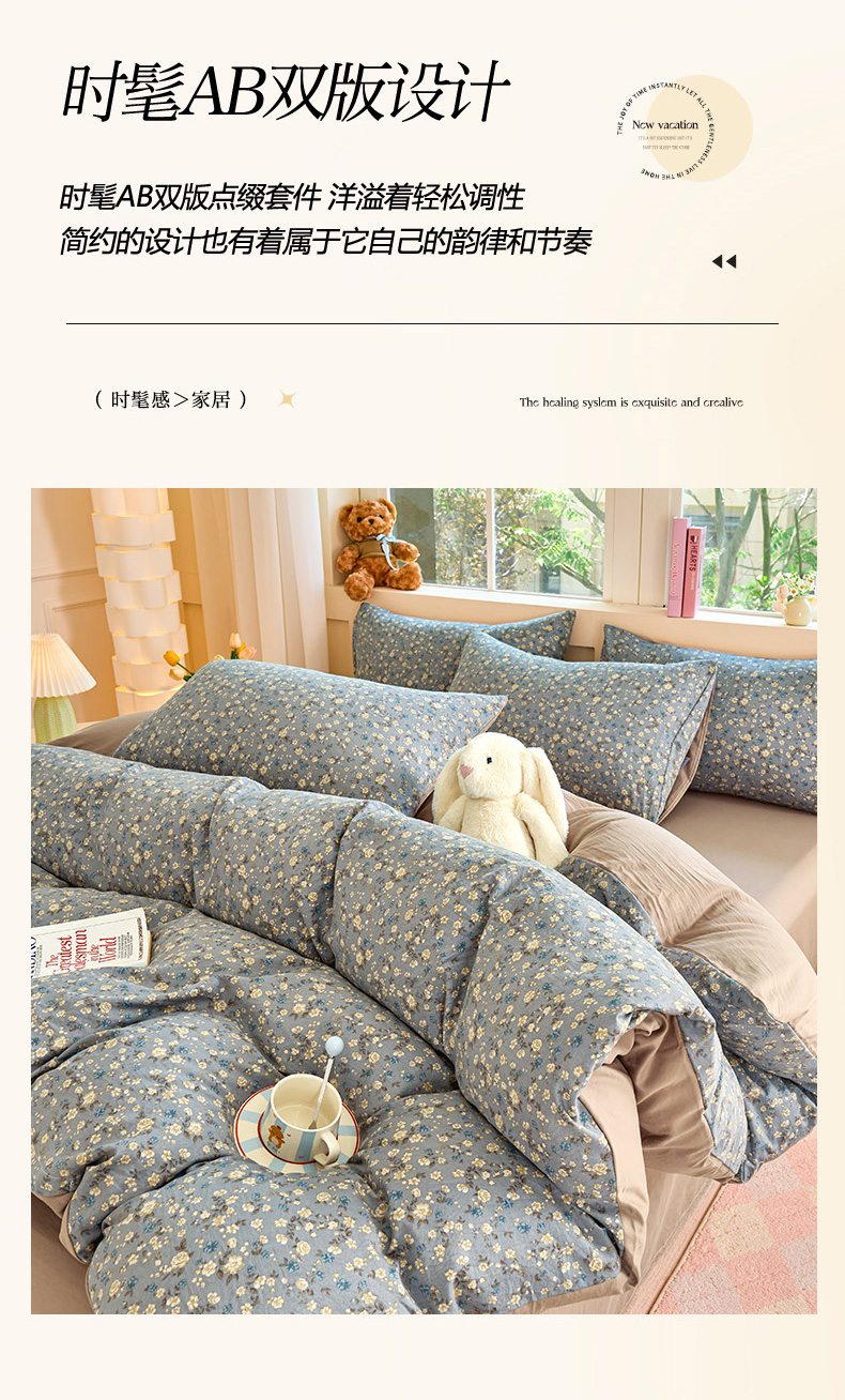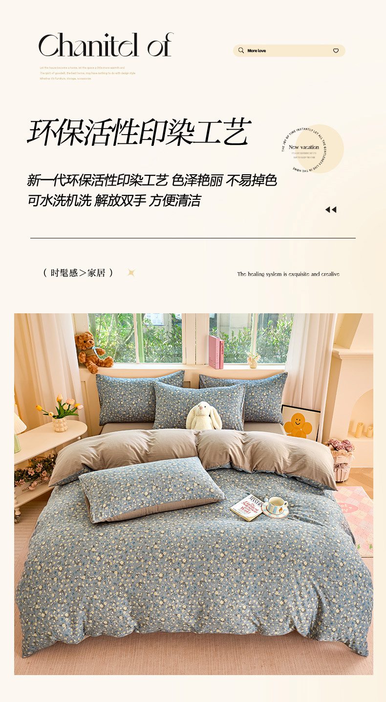 当前位置: 91家纺网 > 商品网购 > 床品套件 > 四件套 > 水洗棉四件套 > 卢赛尔 2026新款古法水洗仿棉云感棉学生三件套四件套 秋草-灰