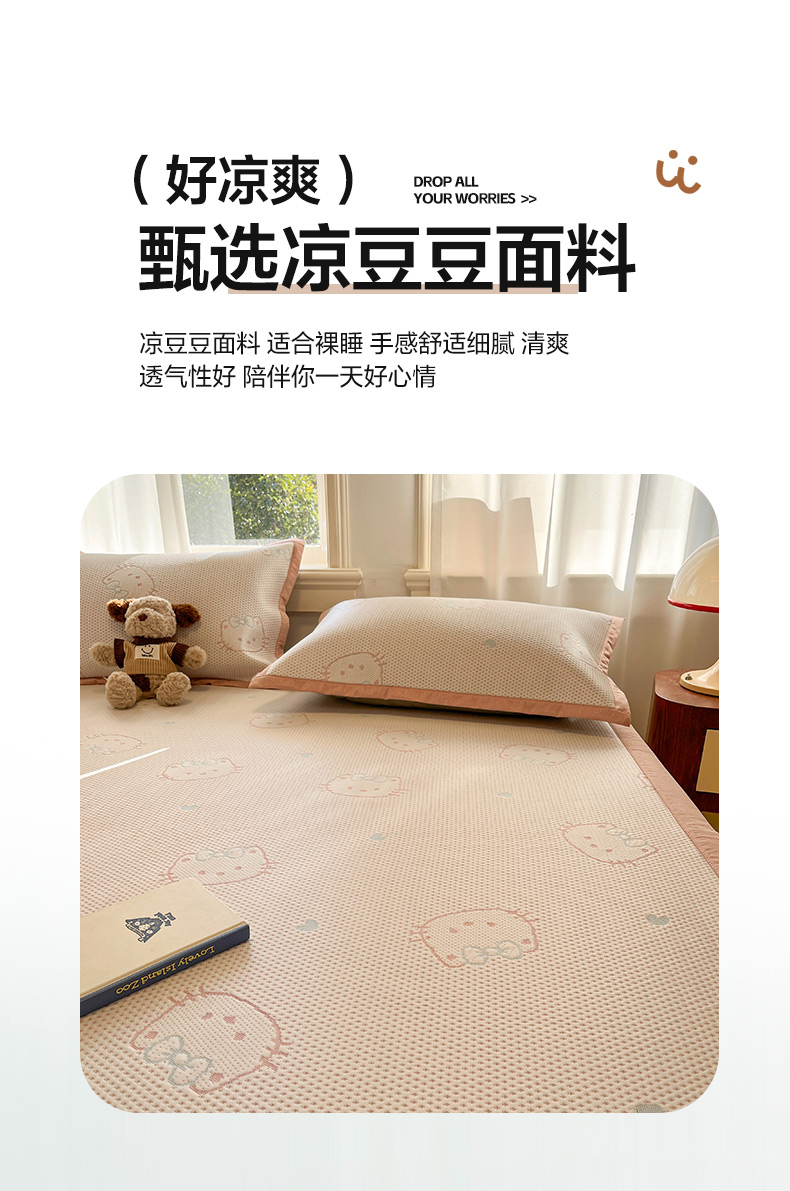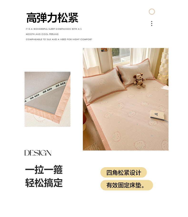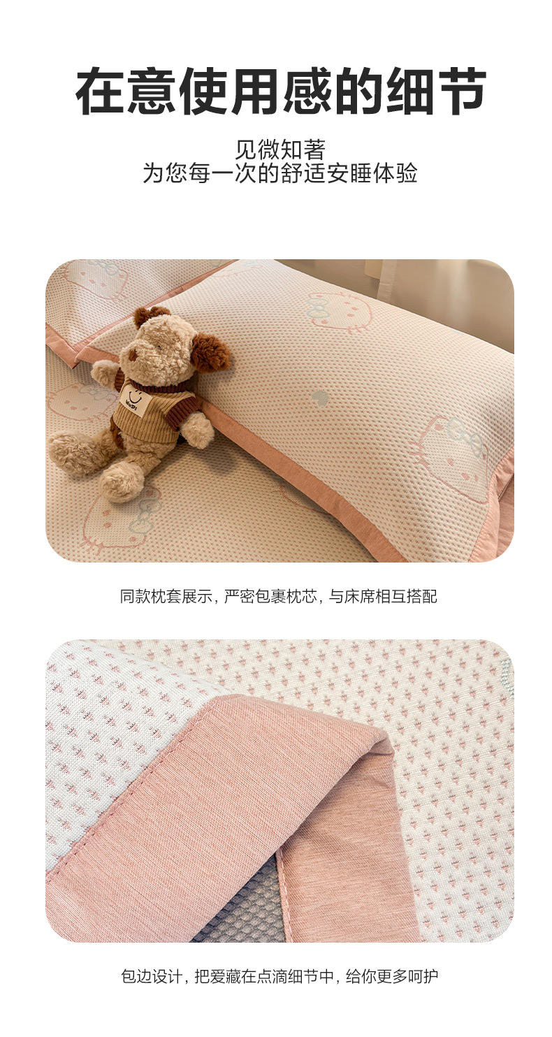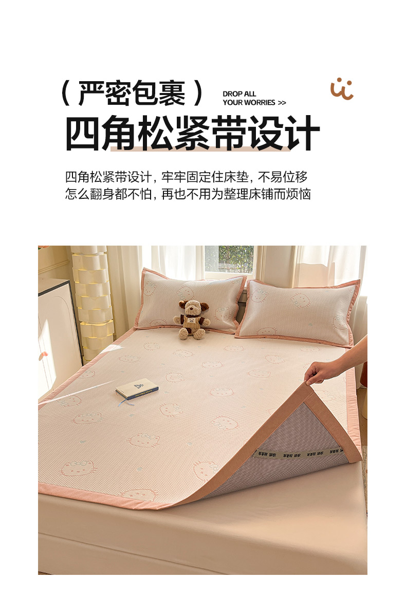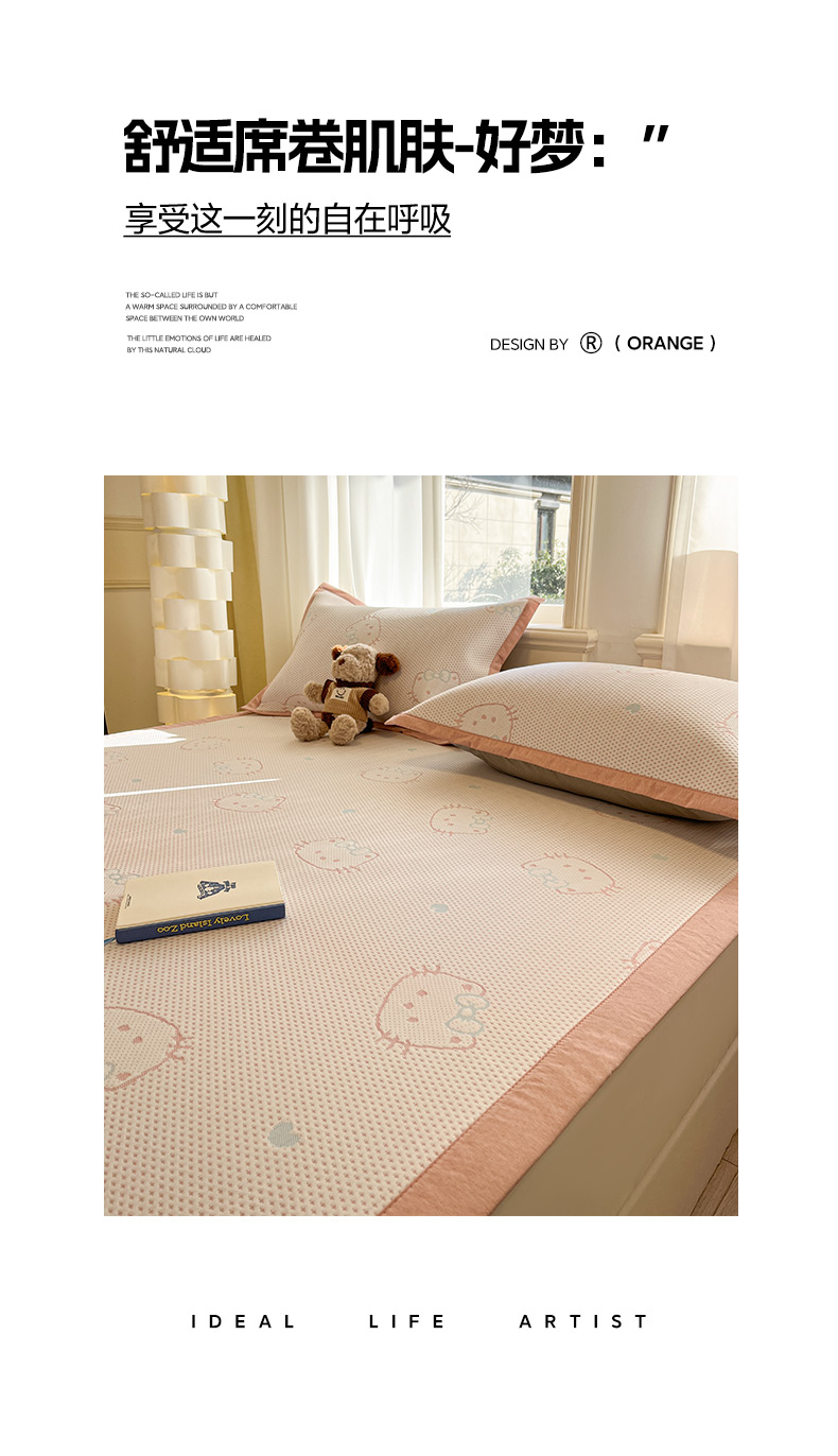 (总)雅居纺家纺 2026新款A类加厚三明治底提花小清新凉感席床笠款凉席席子,粉小兔,蝴蝶结猫咪,领结小猫,平安熊猫,山茶花,太空星球,晚安小狗,小熊熊,星星小熊,悠闲花园