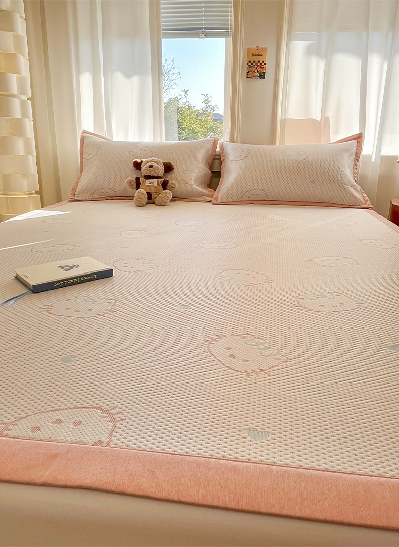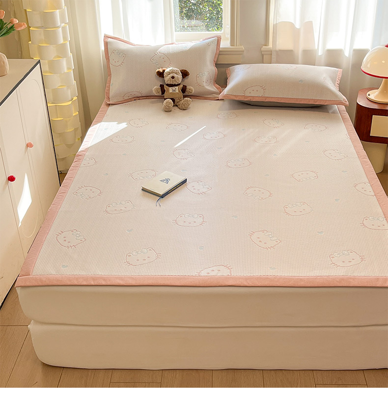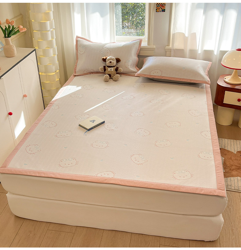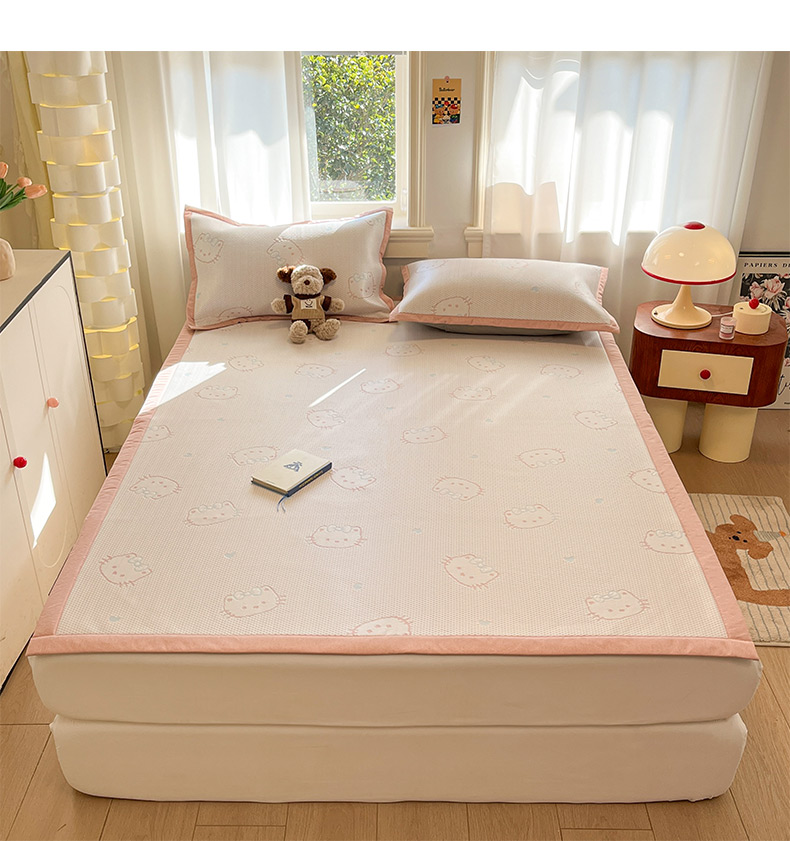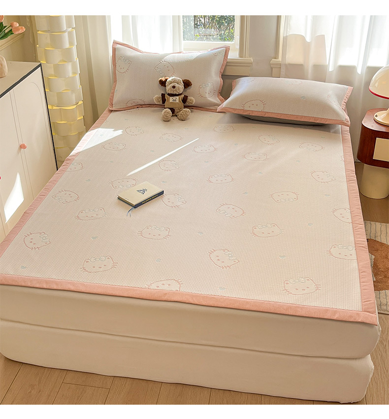商品名称:雅居纺家纺 2026新款A类加厚三明治底提花小清新凉感席床单款凉席席子 蝴蝶结猫咪