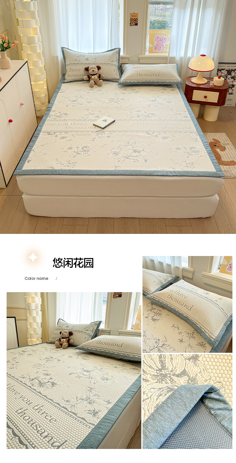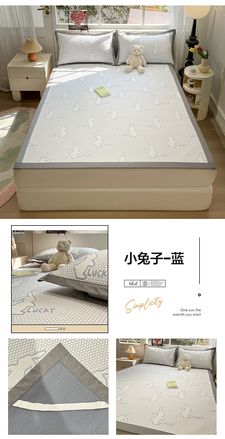 (总)雅居纺家纺 2026新款A类加厚三明治底提花小清新凉感席床单款凉席席子,粉小兔,复古花园,蝴蝶结猫咪,领结小猫,平安熊猫,山茶花,太空星球,晚安小狗,小恐龙-粉,小兔郁金香-粉,小兔子-粉,小兔子-蓝,小熊熊,星星小熊,熊猫竹子,叶子,悠闲花园