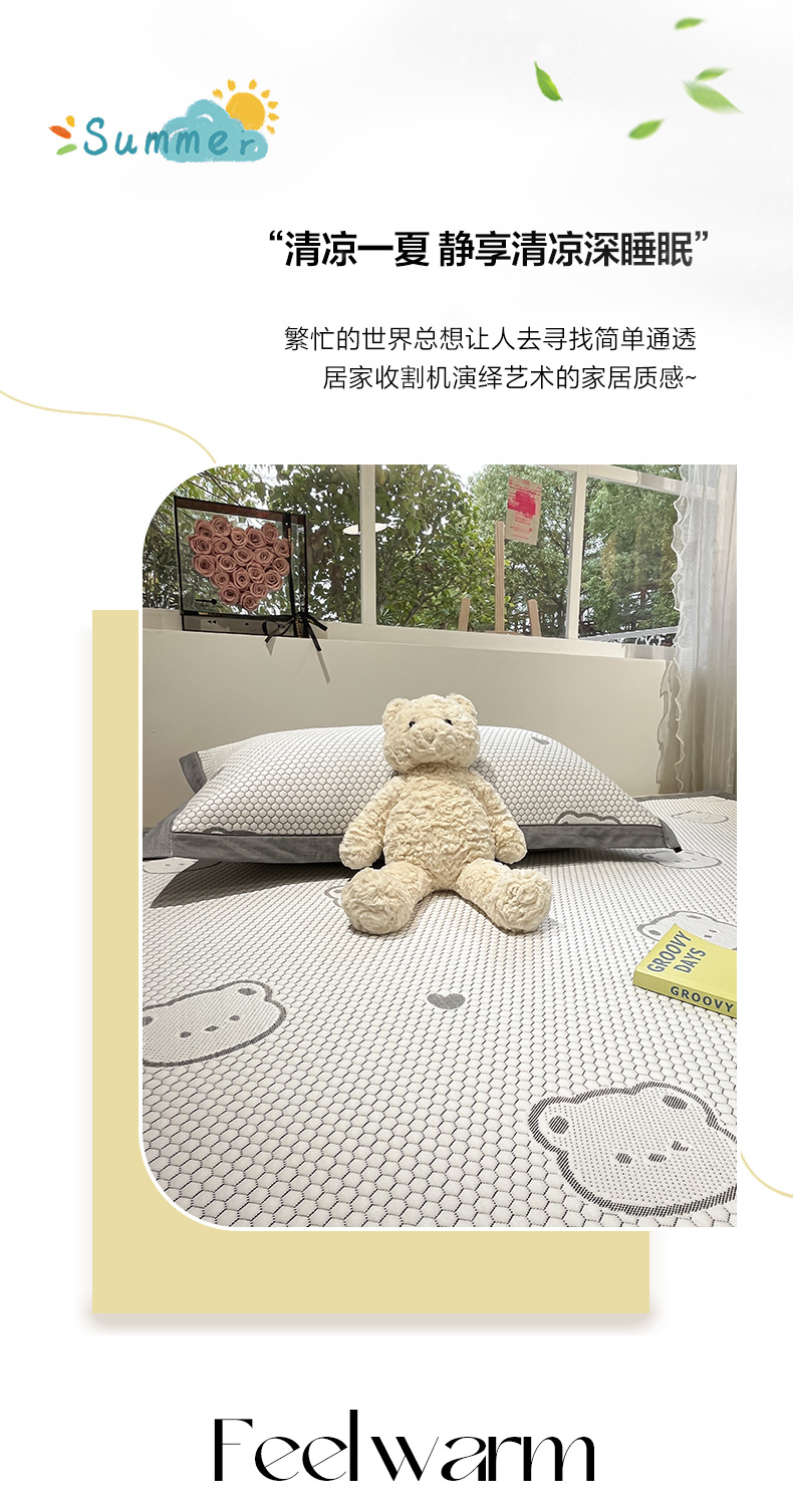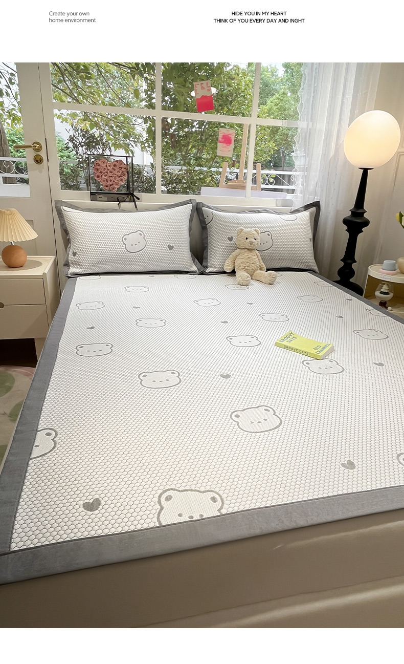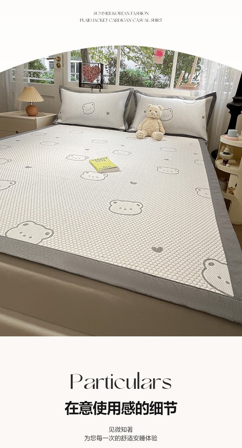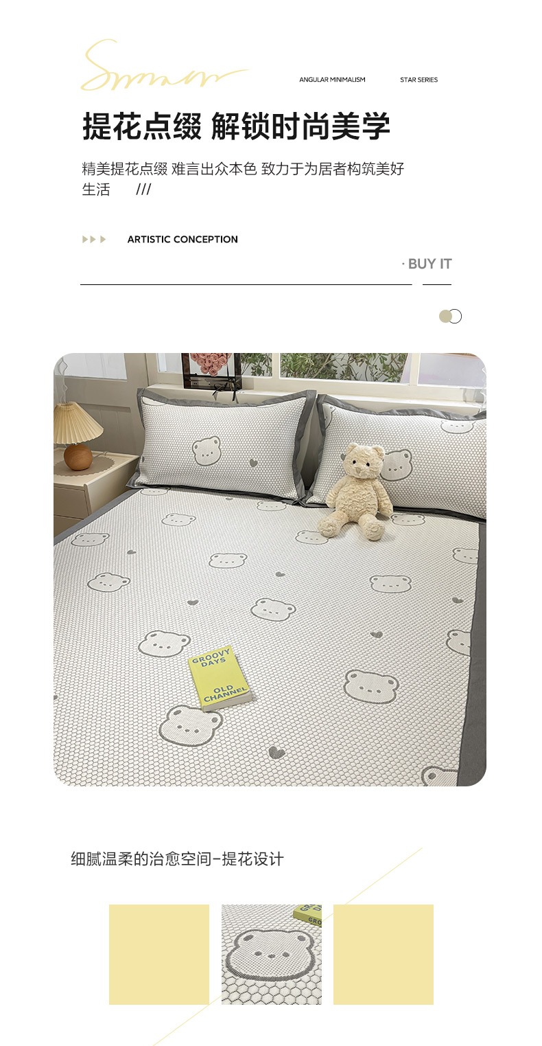 商品名称:雅居纺家纺 2026新款A类加厚三明治底提花小清新凉感席床单款凉席席子 小熊熊