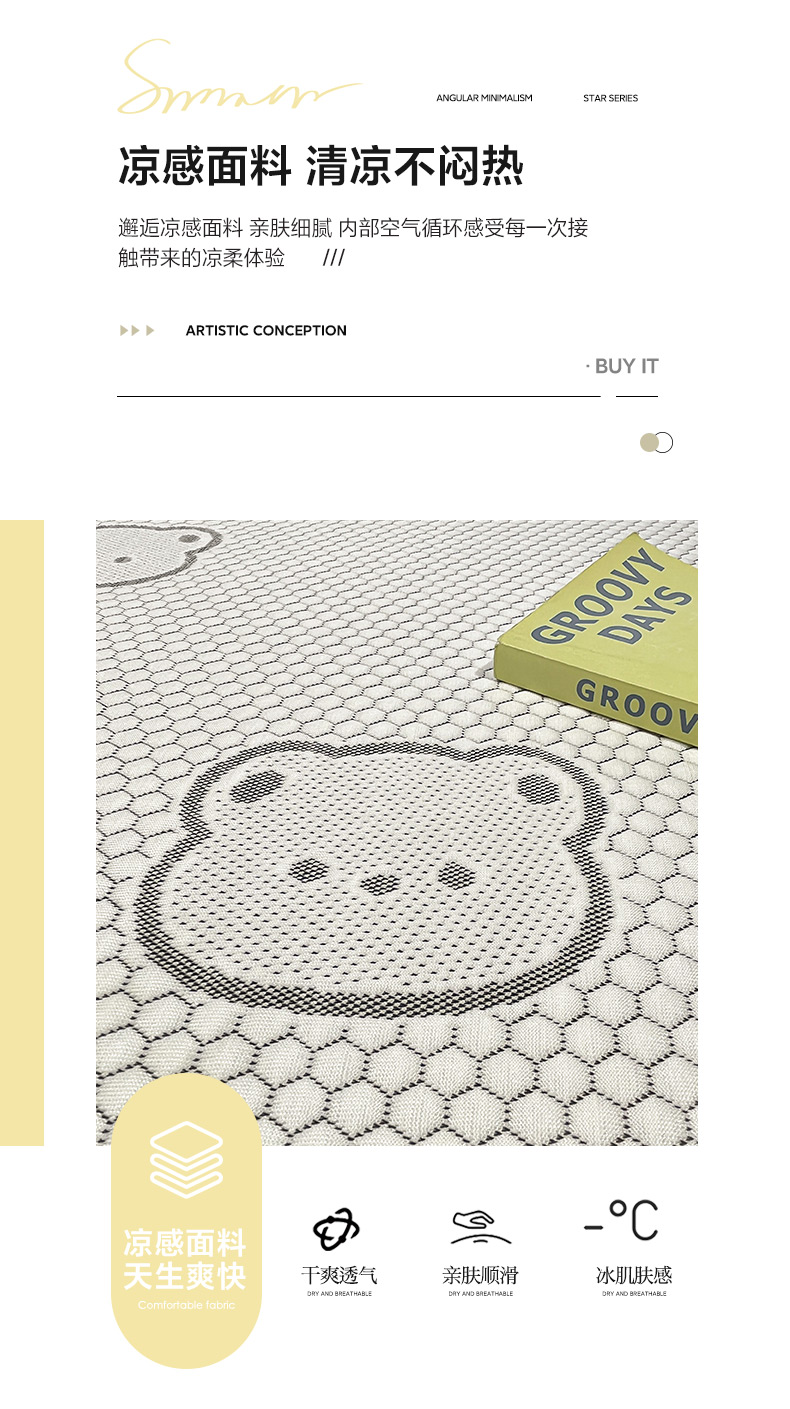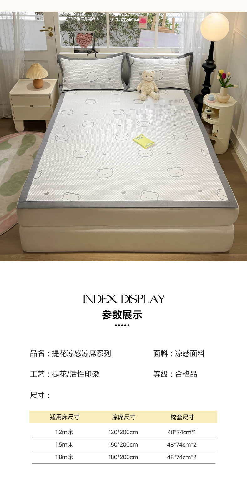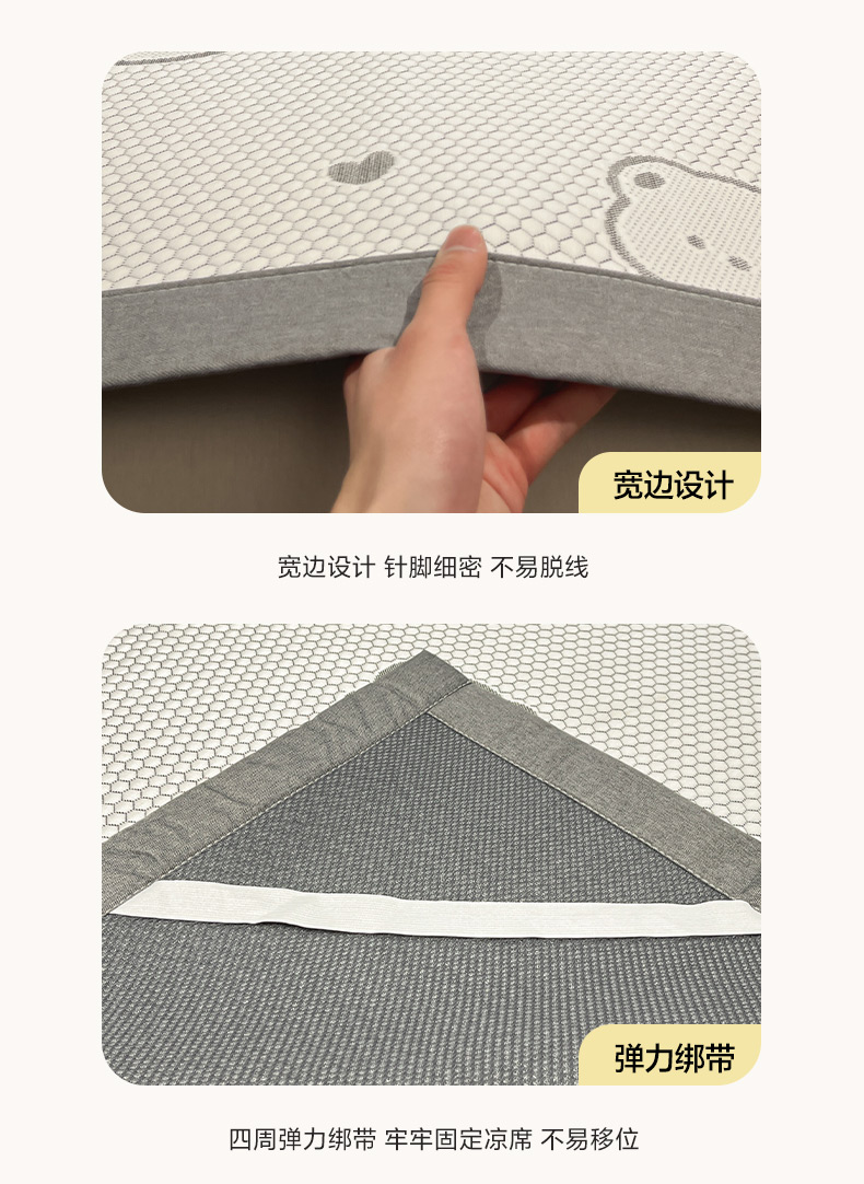 商品名称:雅居纺家纺 2026新款A类加厚三明治底提花小清新凉感席床单款凉席席子 小熊熊