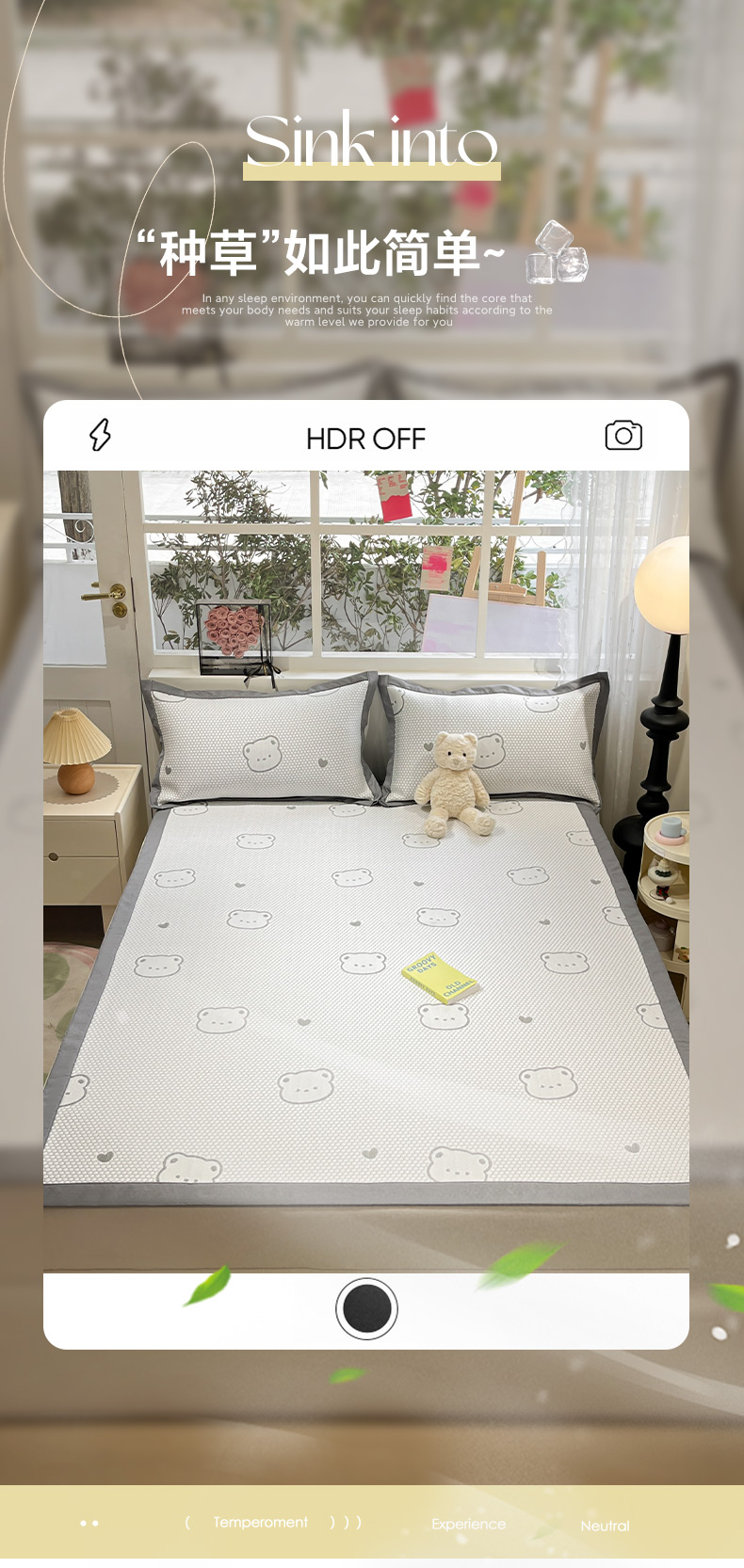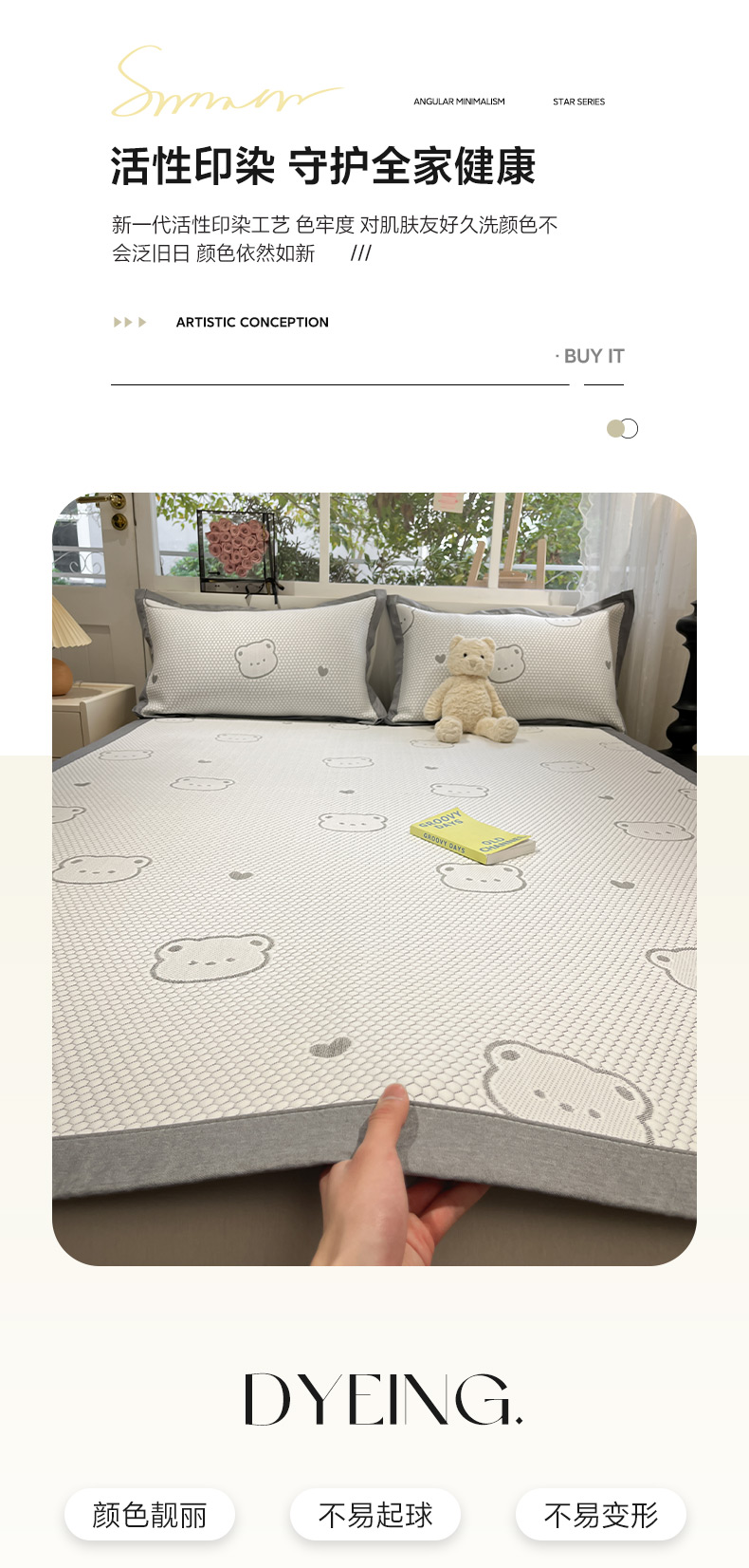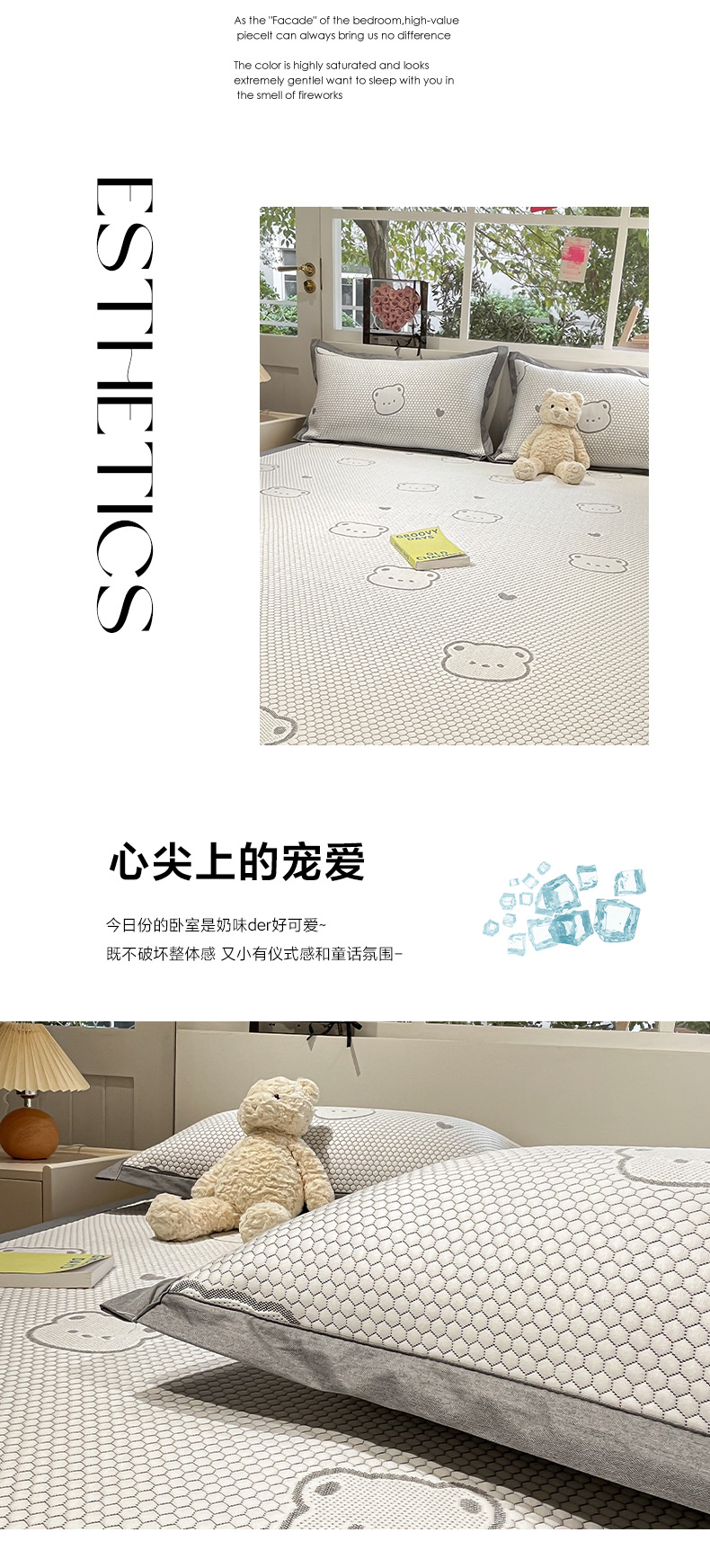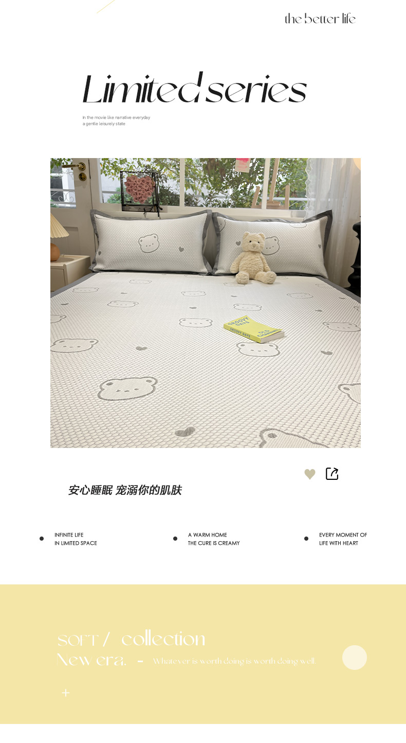 商品名称:雅居纺家纺 2026新款A类加厚三明治底提花小清新凉感席床单款凉席席子 小熊熊