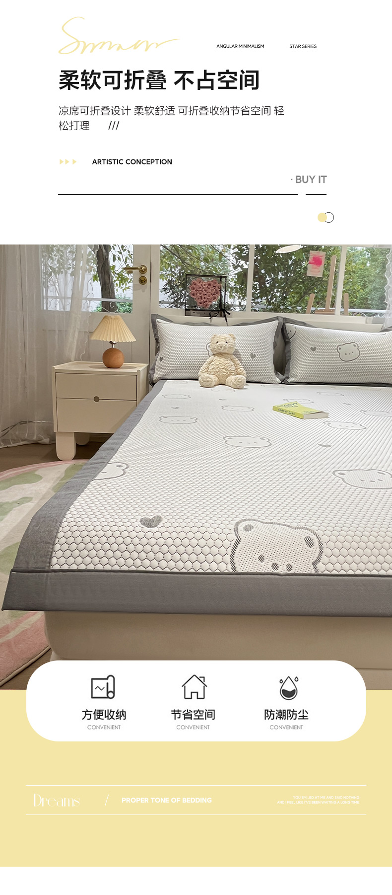 (总)雅居纺家纺 2026新款A类加厚三明治底提花小清新凉感席床笠款凉席席子,粉小兔,蝴蝶结猫咪,领结小猫,平安熊猫,山茶花,太空星球,晚安小狗,小熊熊,星星小熊,悠闲花园