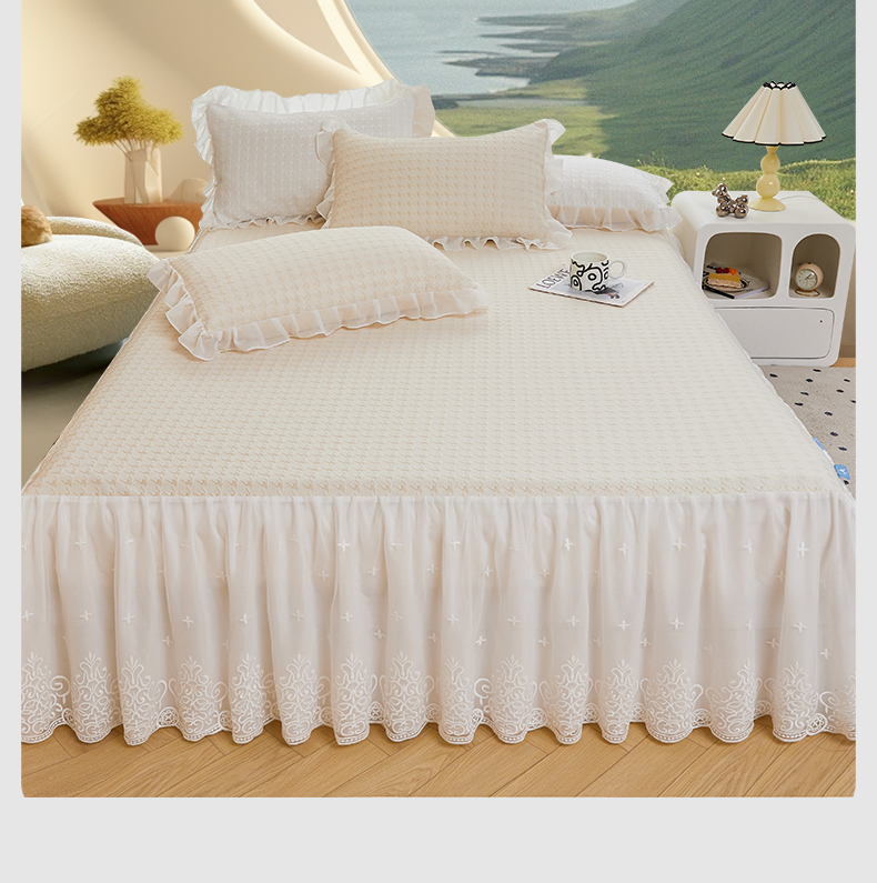(总)源梦家纺 2024新款幸运草夹棉单床裙,纯白,大红,豆沙,粉色,灰色,兰色,米黄,玉色