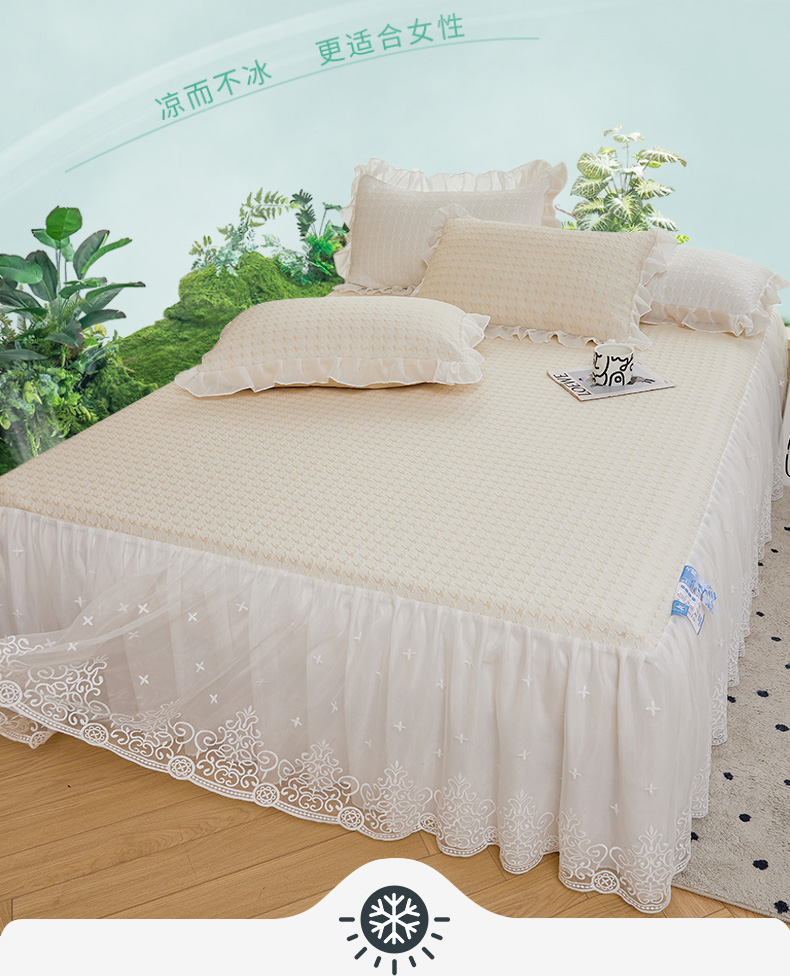 (总)怡源梦 2026新款A类PE聚乙烯冰豆豆提花床裙款席子凉席三件套-梦之约,梦之约-灰色,梦之约-蓝色,梦之约-米色,梦之约-藕粉,梦之约-浅绿