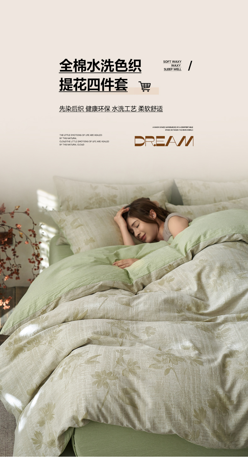 商品名称:如一 2026新款色织提花全棉水洗棉四件套第一批 兰序-绿