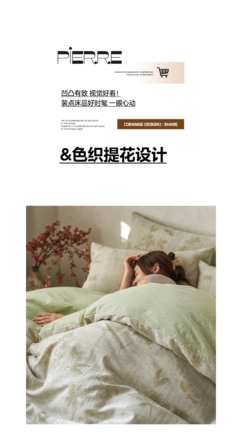 (总)如一 2026新款色织提花全棉水洗棉四件套第一批,叶笙-绿,叶笙-咖,兰序-绿,叶笙-粉,兰序-紫,兰序-蓝,兰序-咖