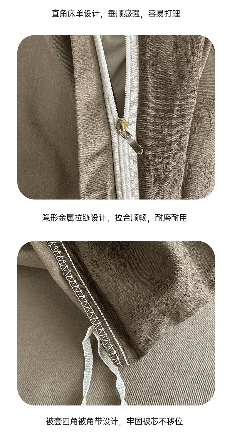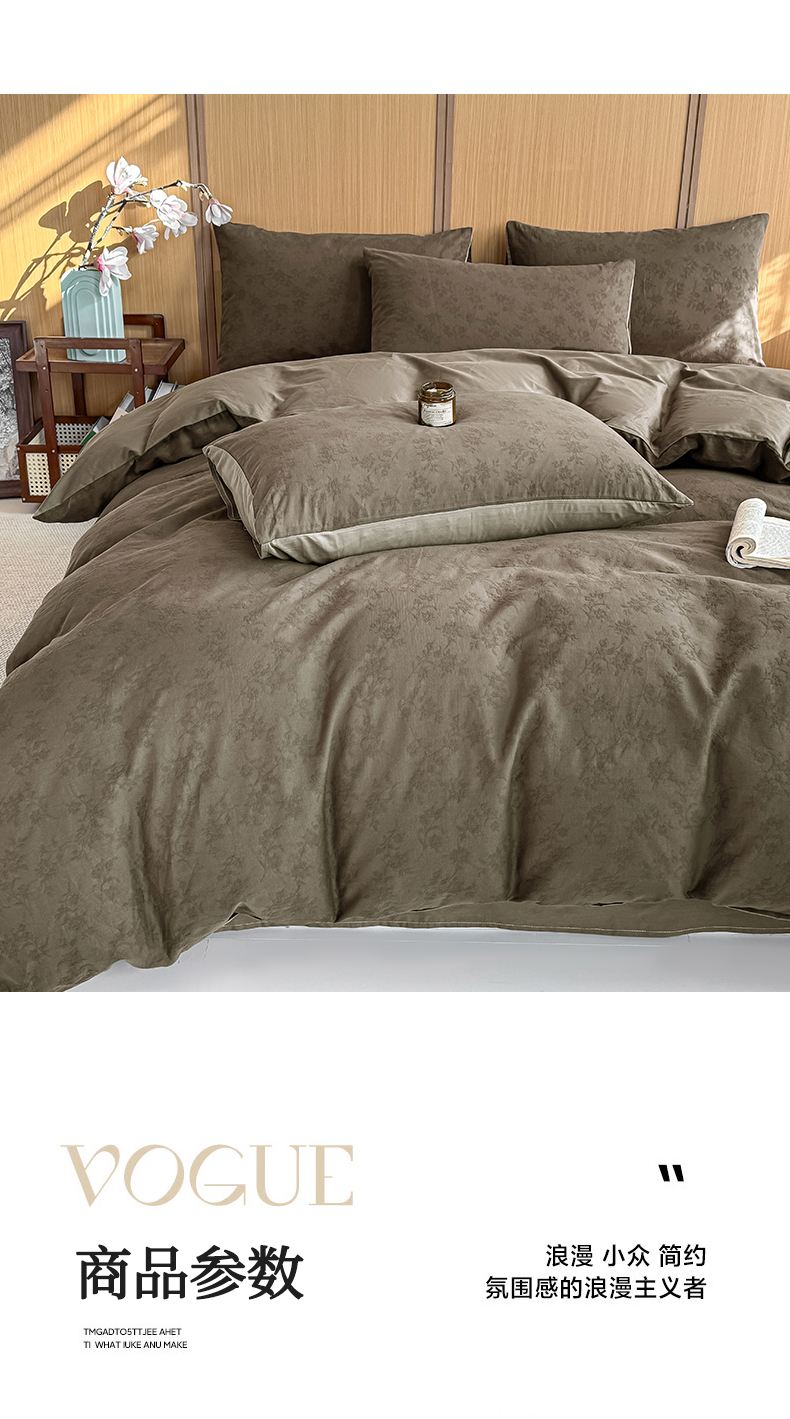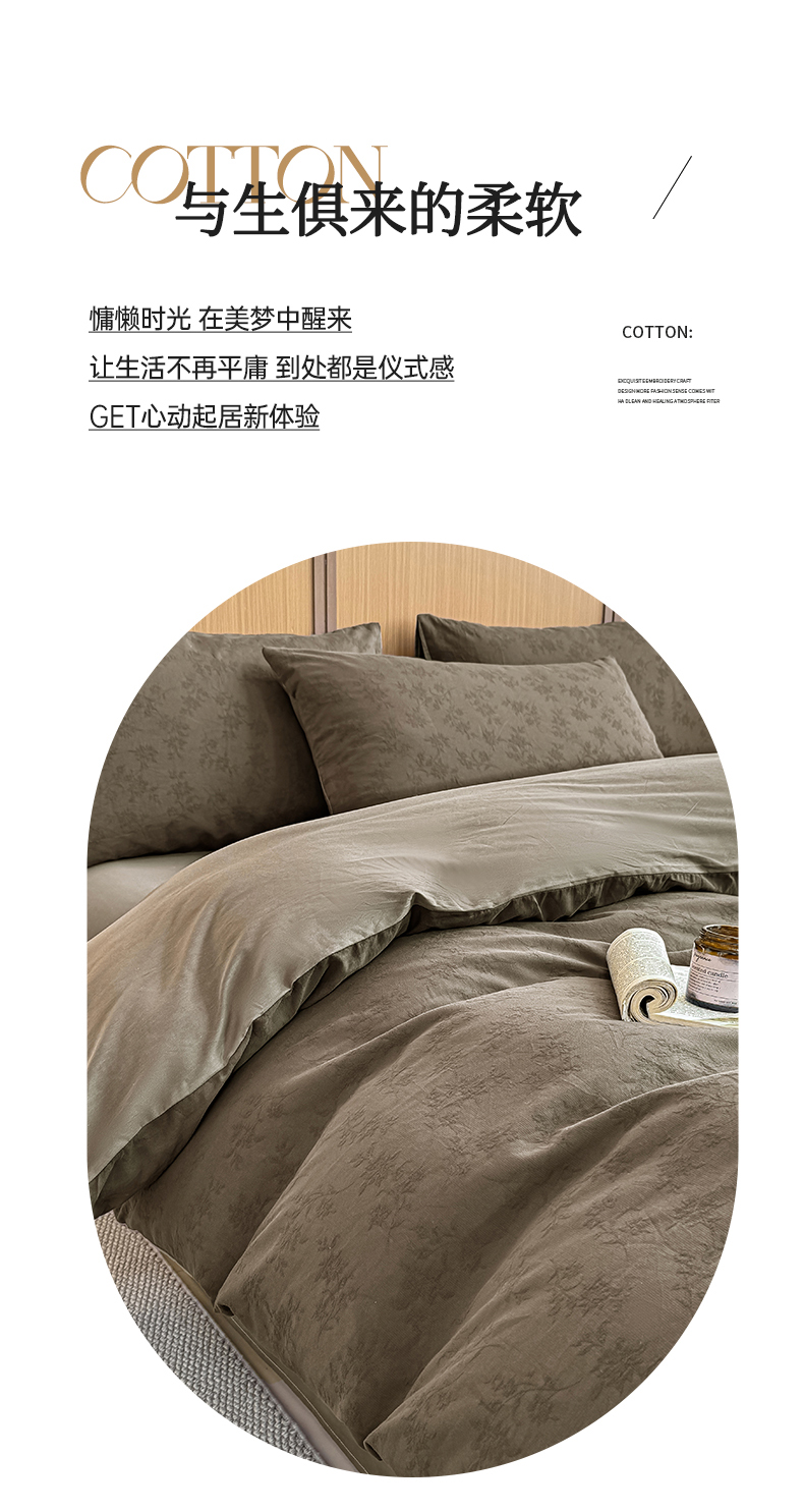 当前位置: 91家纺网 > 商品网购 > 床品套件 > 四件套 > 全棉普通四件套 > 灰鲸 2026新款全棉纯棉三层纱色织提花四件套 花影-摩卡