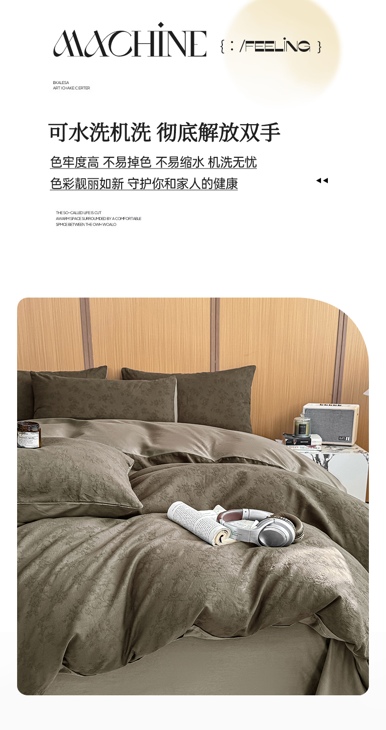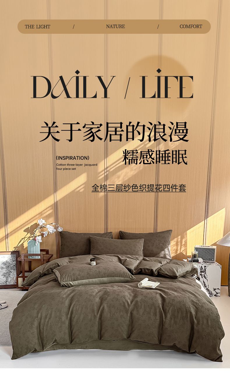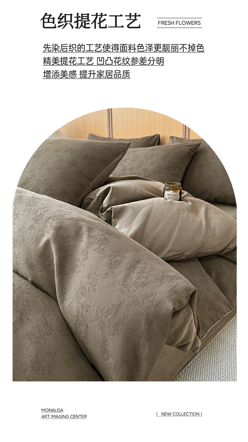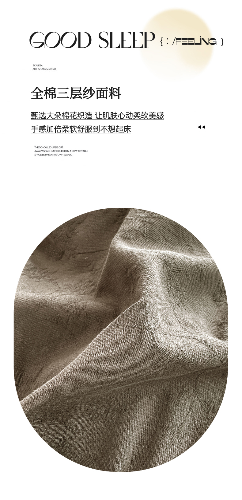 当前位置: 91家纺网 > 商品网购 > 床品套件 > 四件套 > 全棉普通四件套 > 灰鲸 2026新款全棉纯棉三层纱色织提花四件套 花影-摩卡