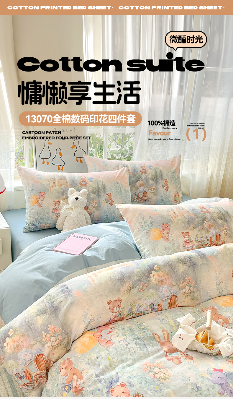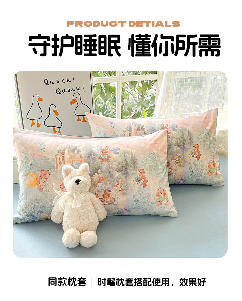 (总)睡美美家纺 2026新款13070数码印花全棉纯棉动物卡通三件套四件套,动物派对,萌宠乐园,梦幻城堡-绿,梦幻城堡-粉,花车小熊-蓝,洛克庄园,节日狂欢,花车小熊-紫,木马小象,人鱼公主,熊仔的玫瑰园,悠悠花园