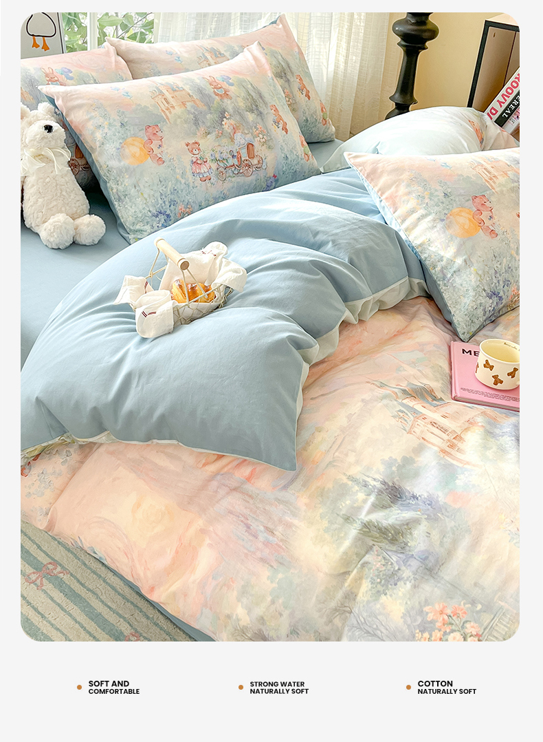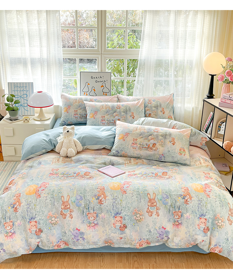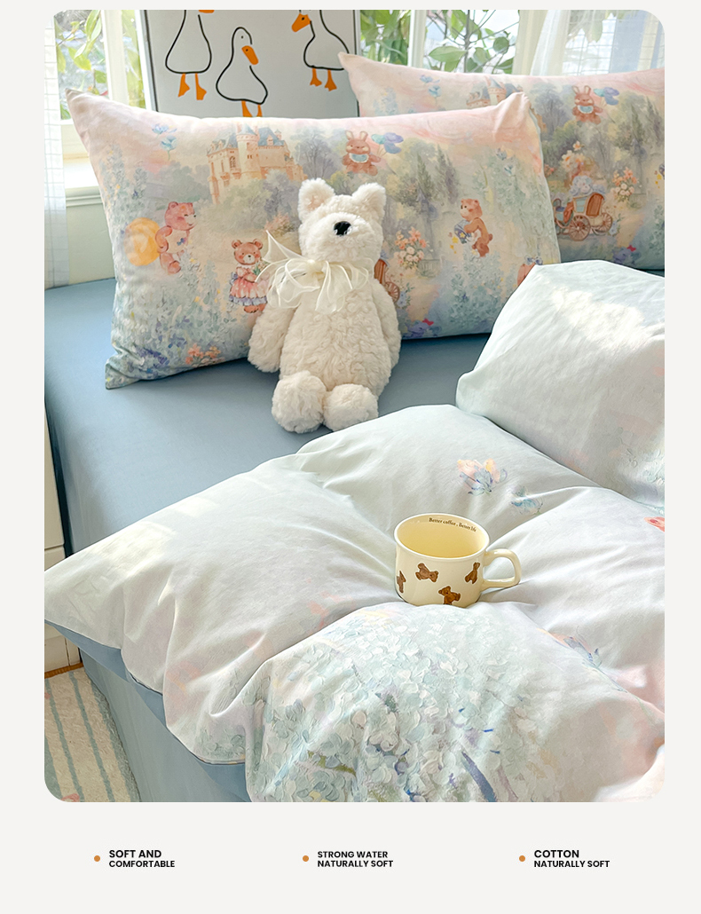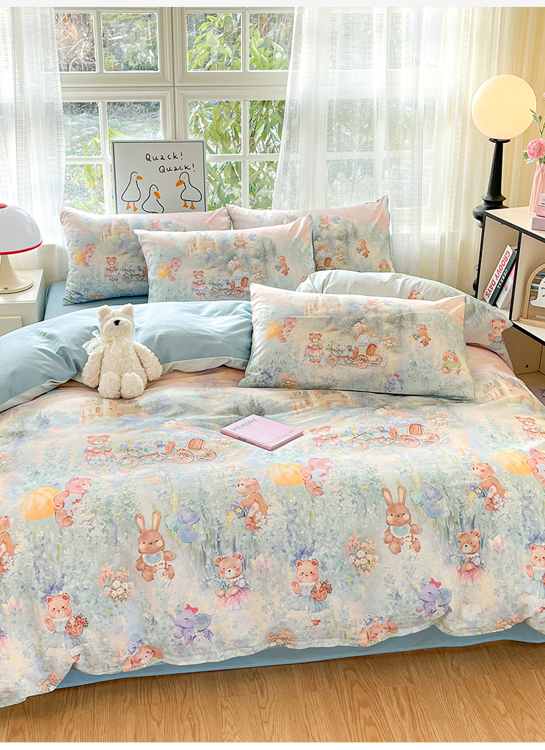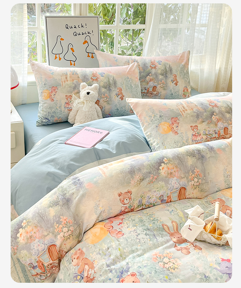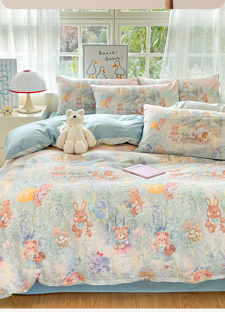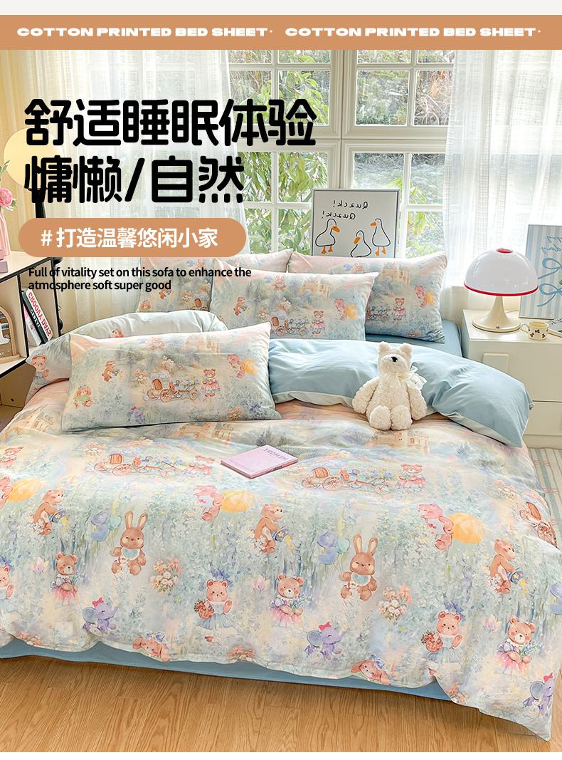 商品名称:睡美美家纺 2026新款13070数码印花全棉纯棉动物卡通三件套四件套 花车小熊-蓝