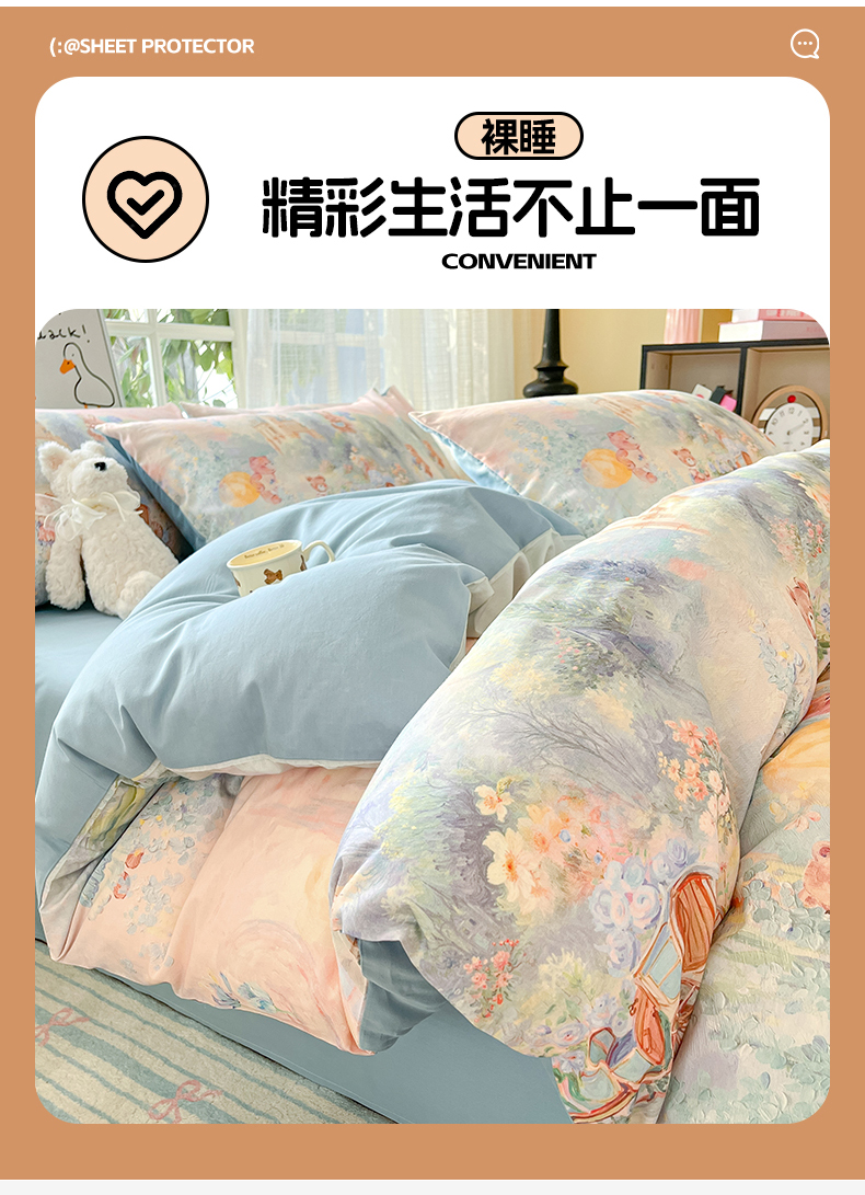 (总)睡美美家纺 2026新款水洗云朵棉亲肤花边款四件套,岛屿,蝴蝶,花序,花影,桃枝,田园,小碎花,星星人