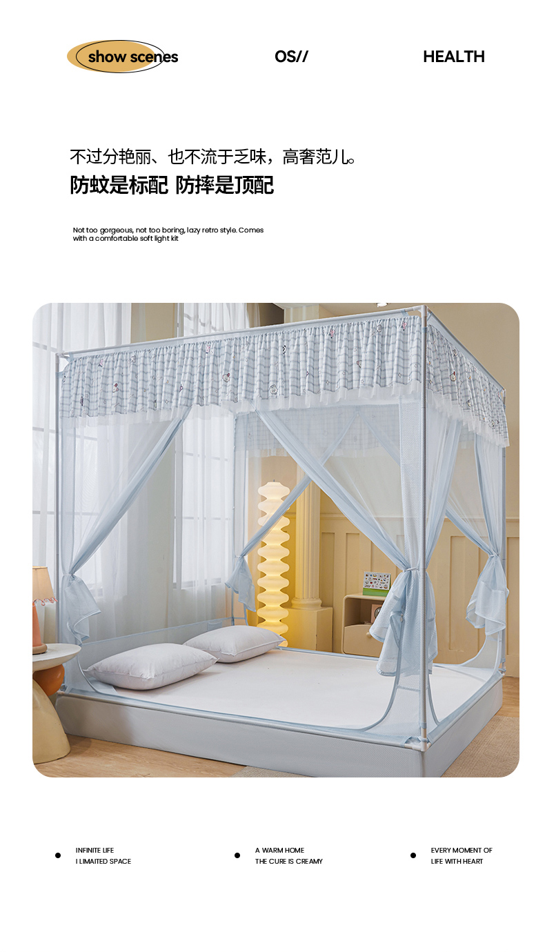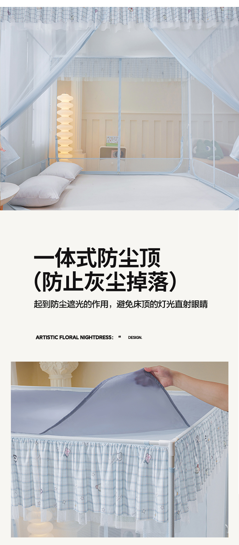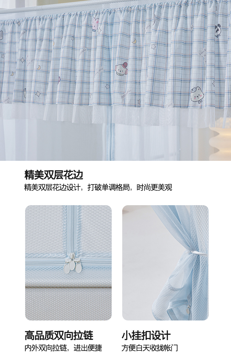当前位置: 91家纺网 > 商品网购 > 床上用品 > 蚊帐 > 坐床式蚊帐 > 青竹苑 2026新款花边款床笠底防摔坐床蚊帐 坐床-格子小动物