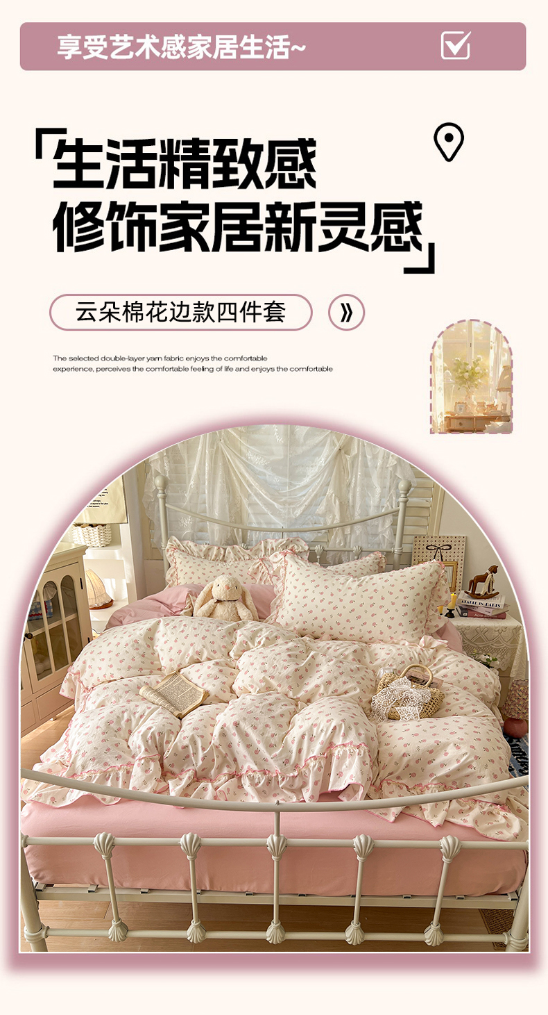 商品名称:睡美美家纺 2026新款水洗云朵棉亲肤花边款四件套 岛屿