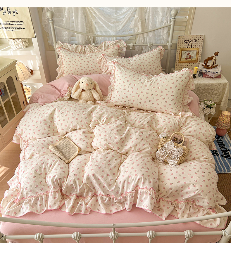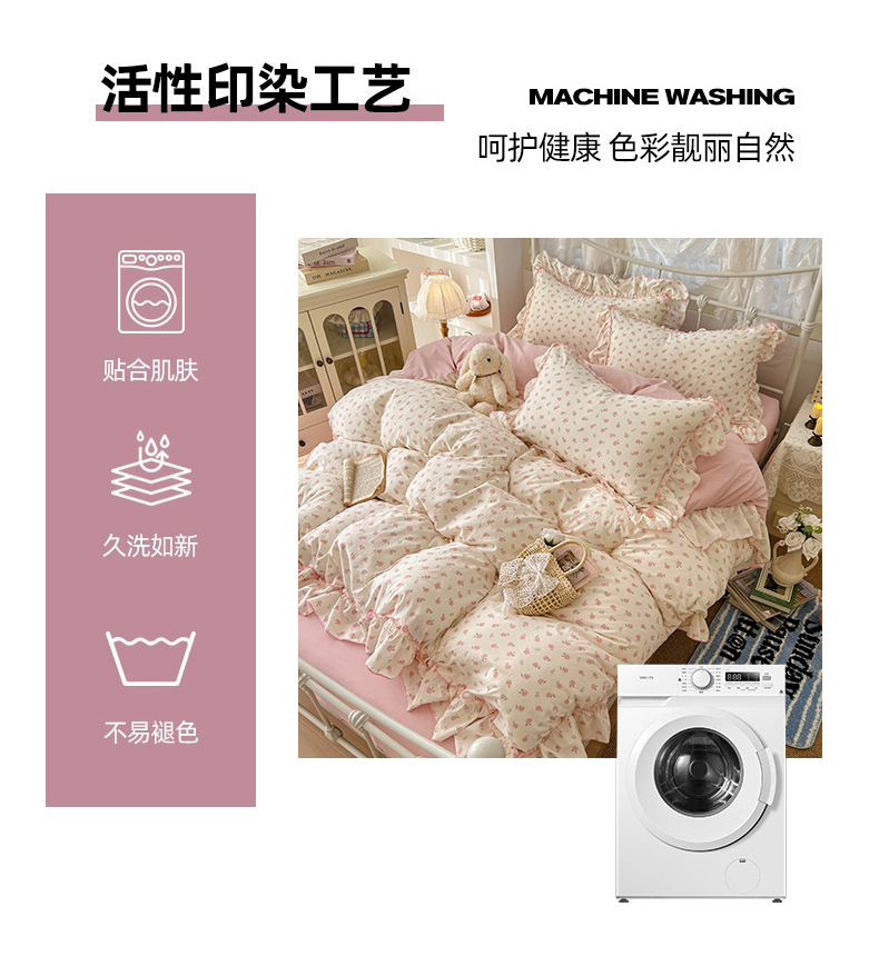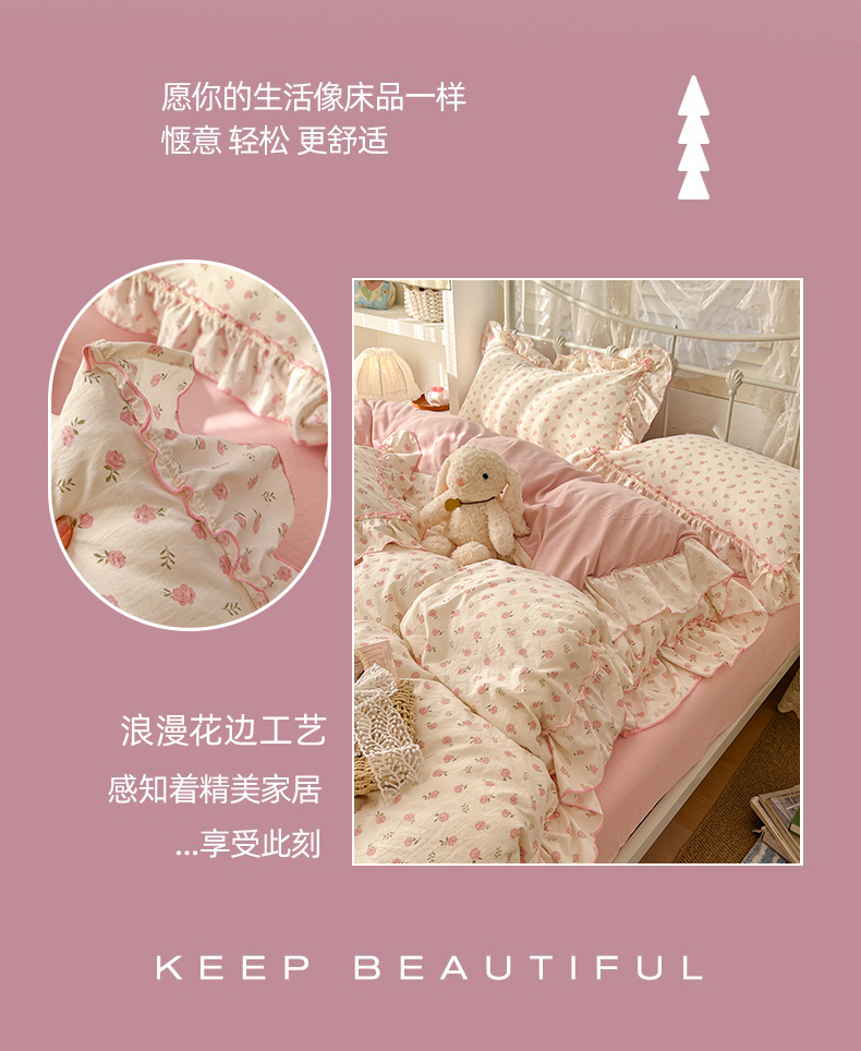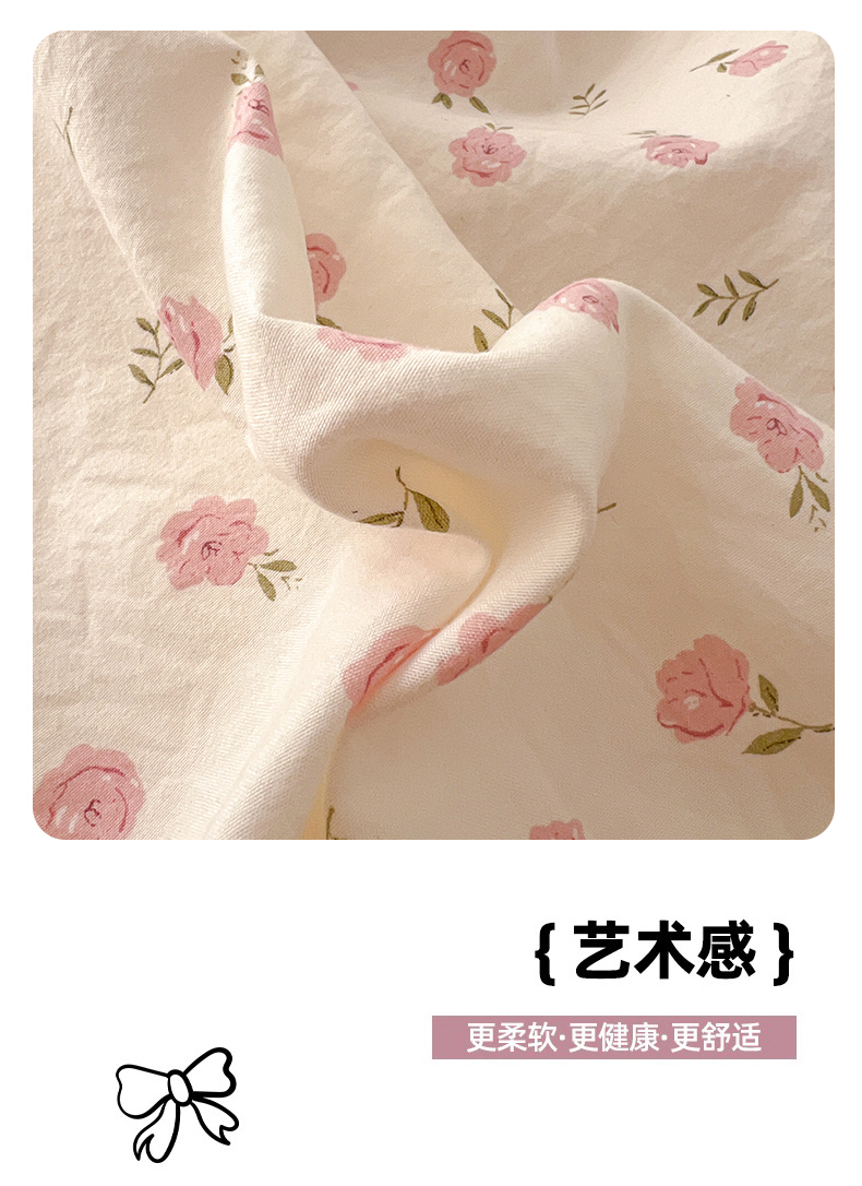 (总)睡美美家纺 2026新款水洗云朵棉亲肤花边款四件套,岛屿,蝴蝶,花序,花影,桃枝,田园,小碎花,星星人
