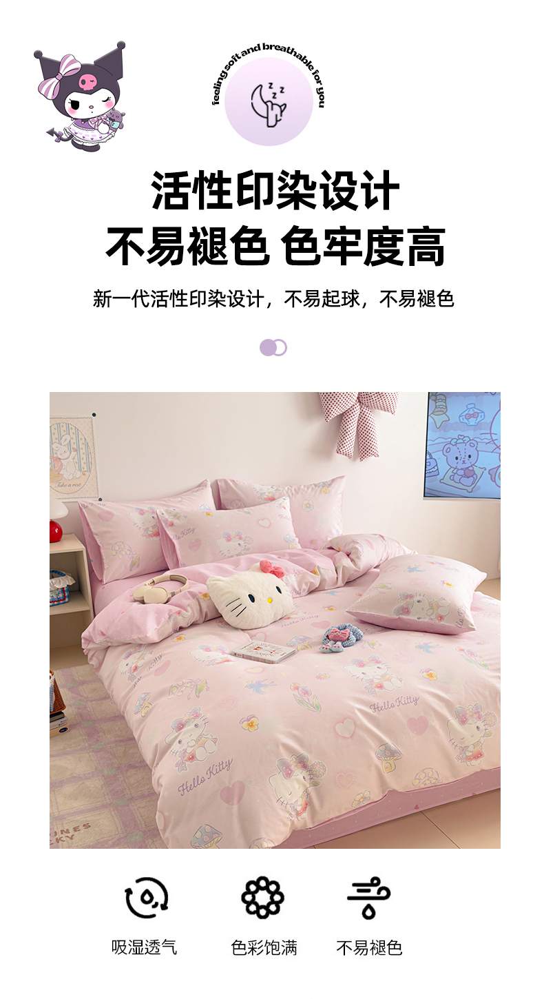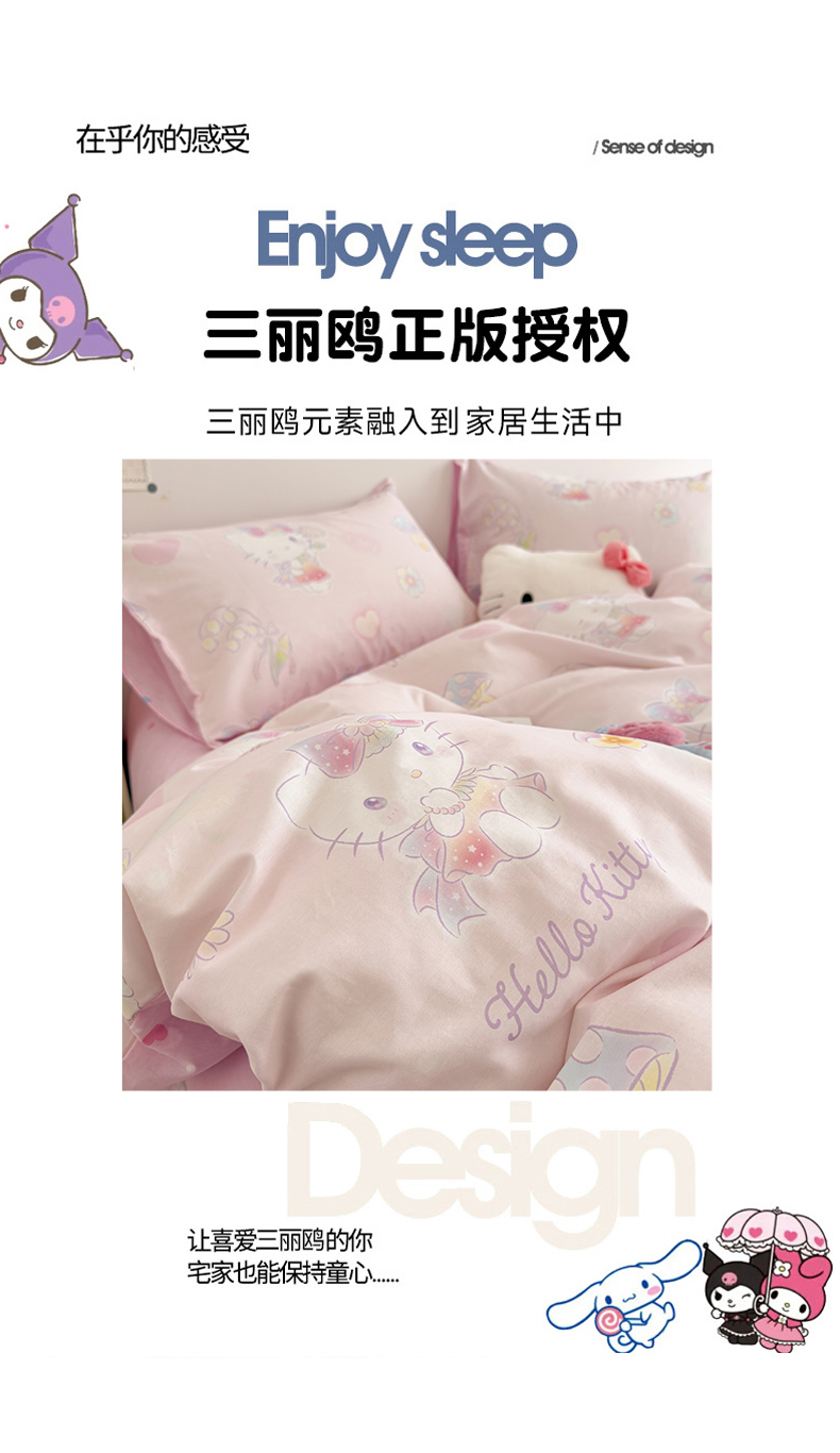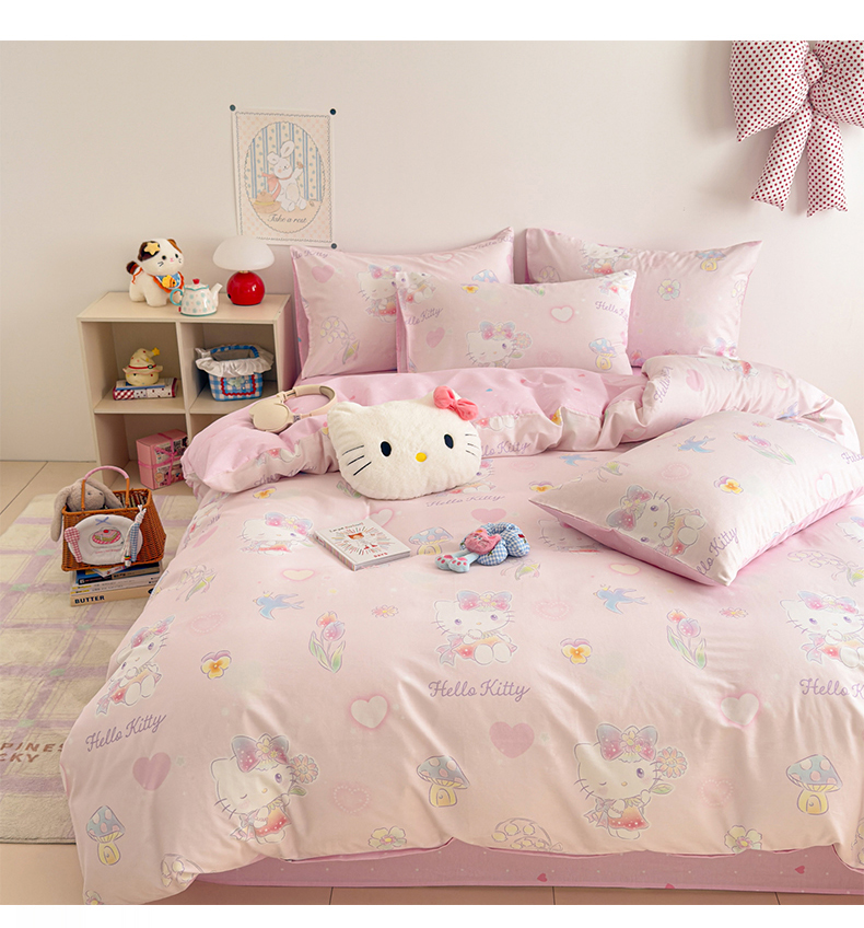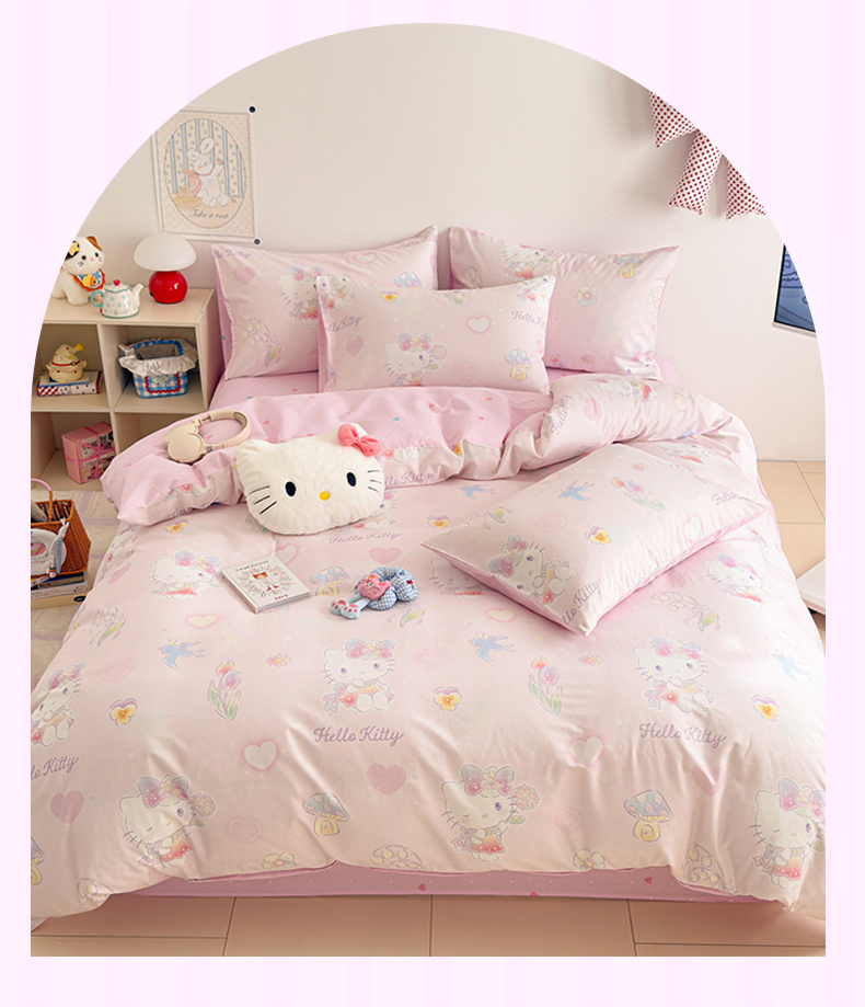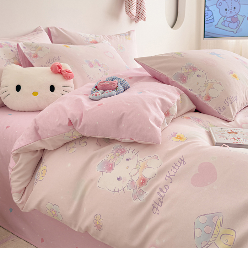 当前位置: 91家纺网 > 商品网购 > 床品套件 > 四件套 > 全棉普通四件套 > 女子家纺 2026新款40支100%纯棉全棉13070斜纹四件套 甜心kitty 粉