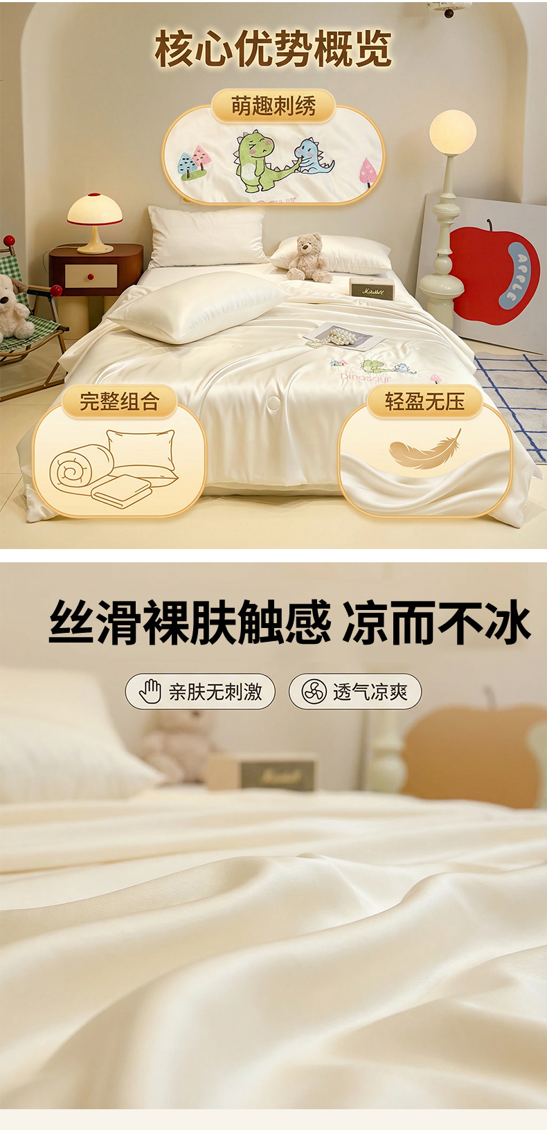 当前位置: 91家纺网 > 商品网购 > 床品套件 > 四件套 > 夏被四件套 > 暖意家纺 2026春夏新款水洗真丝夏被夏凉被空调被四件套 欢乐恐龙-灰