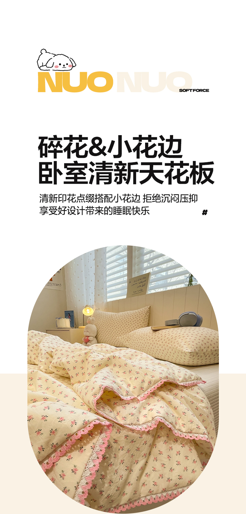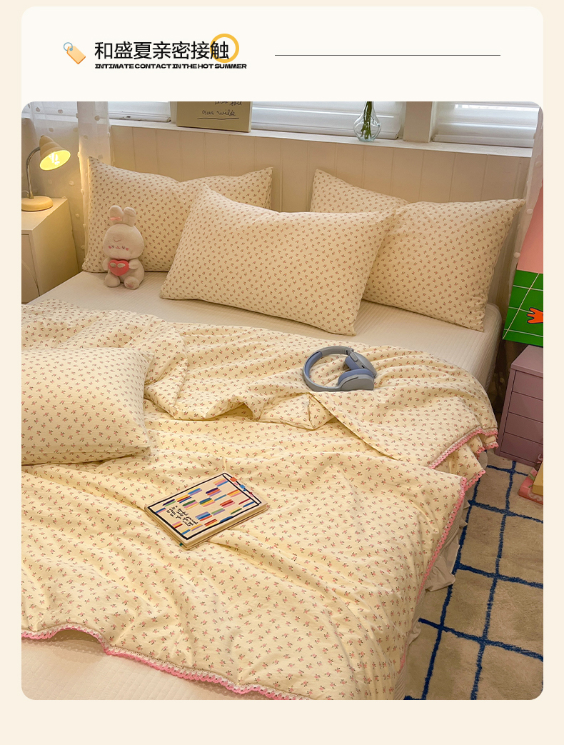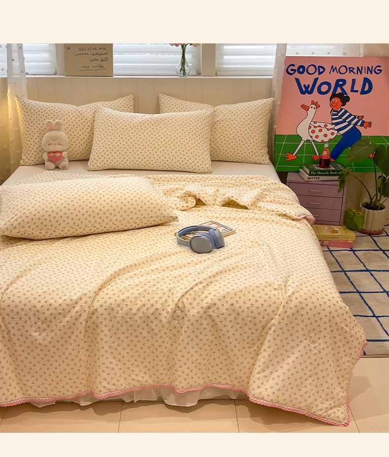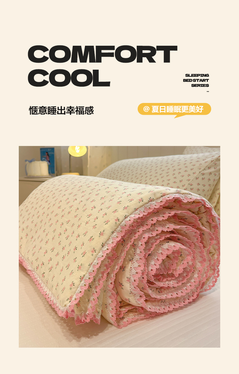 一加一 2026新款全棉小花边碎花大豆夏被-棉云花畔 禾棠悦色
