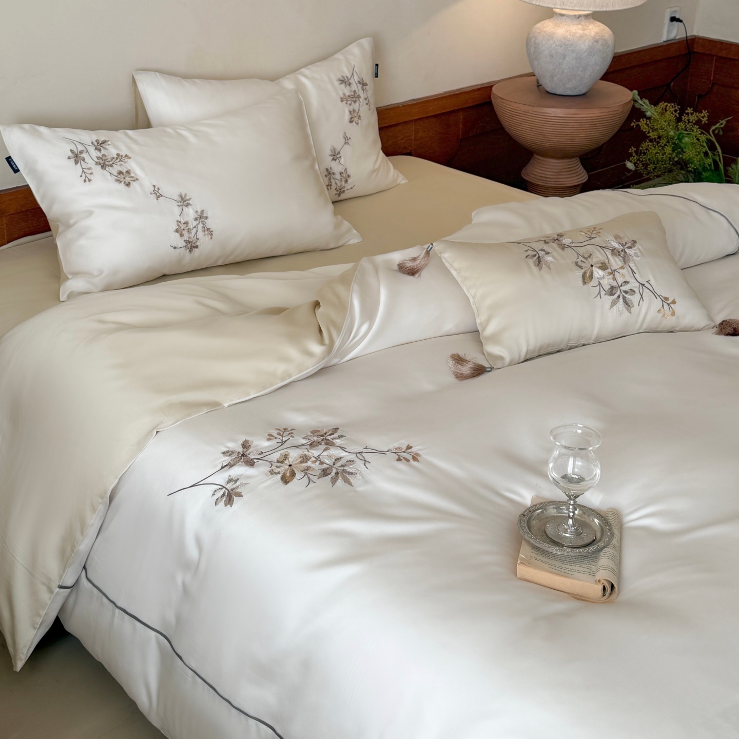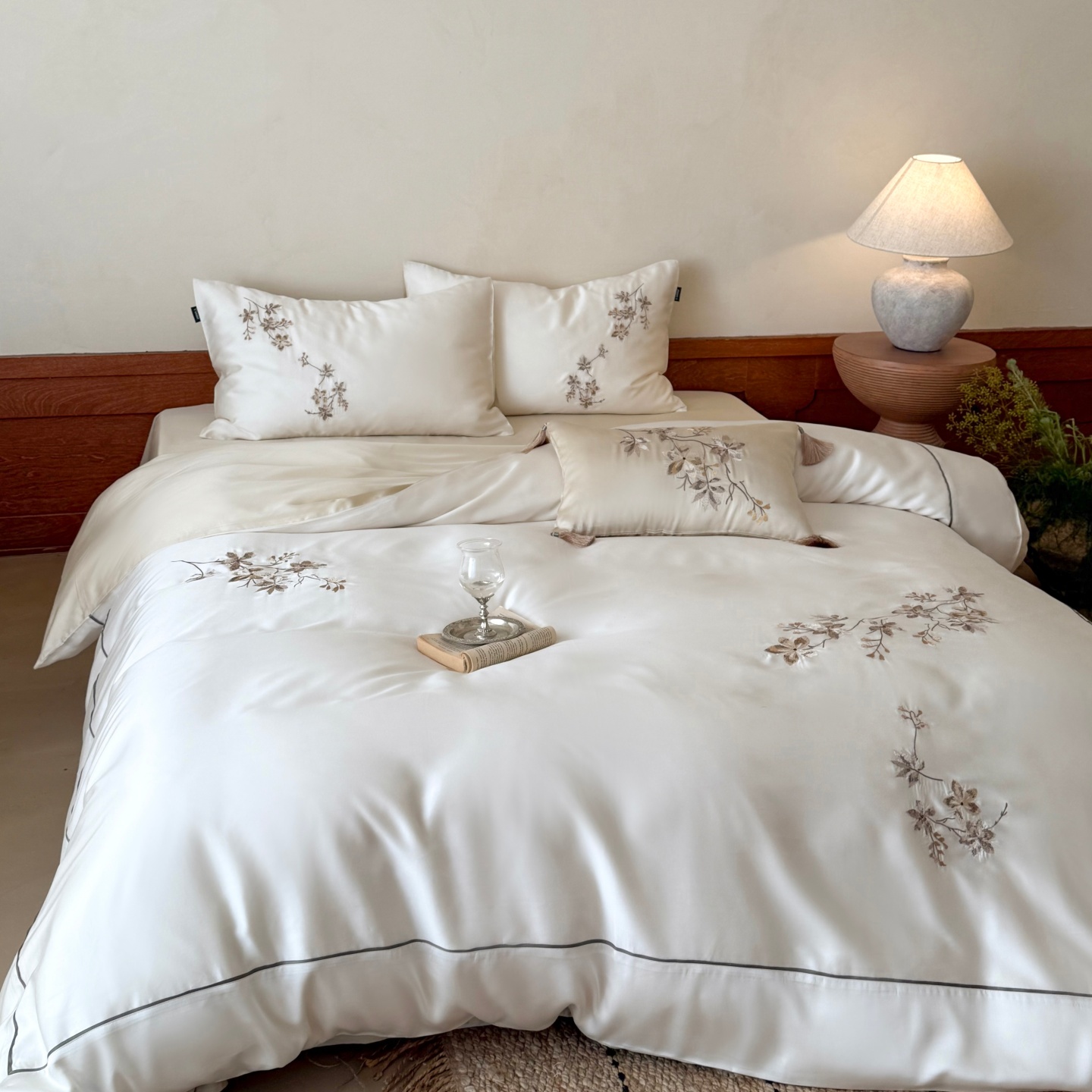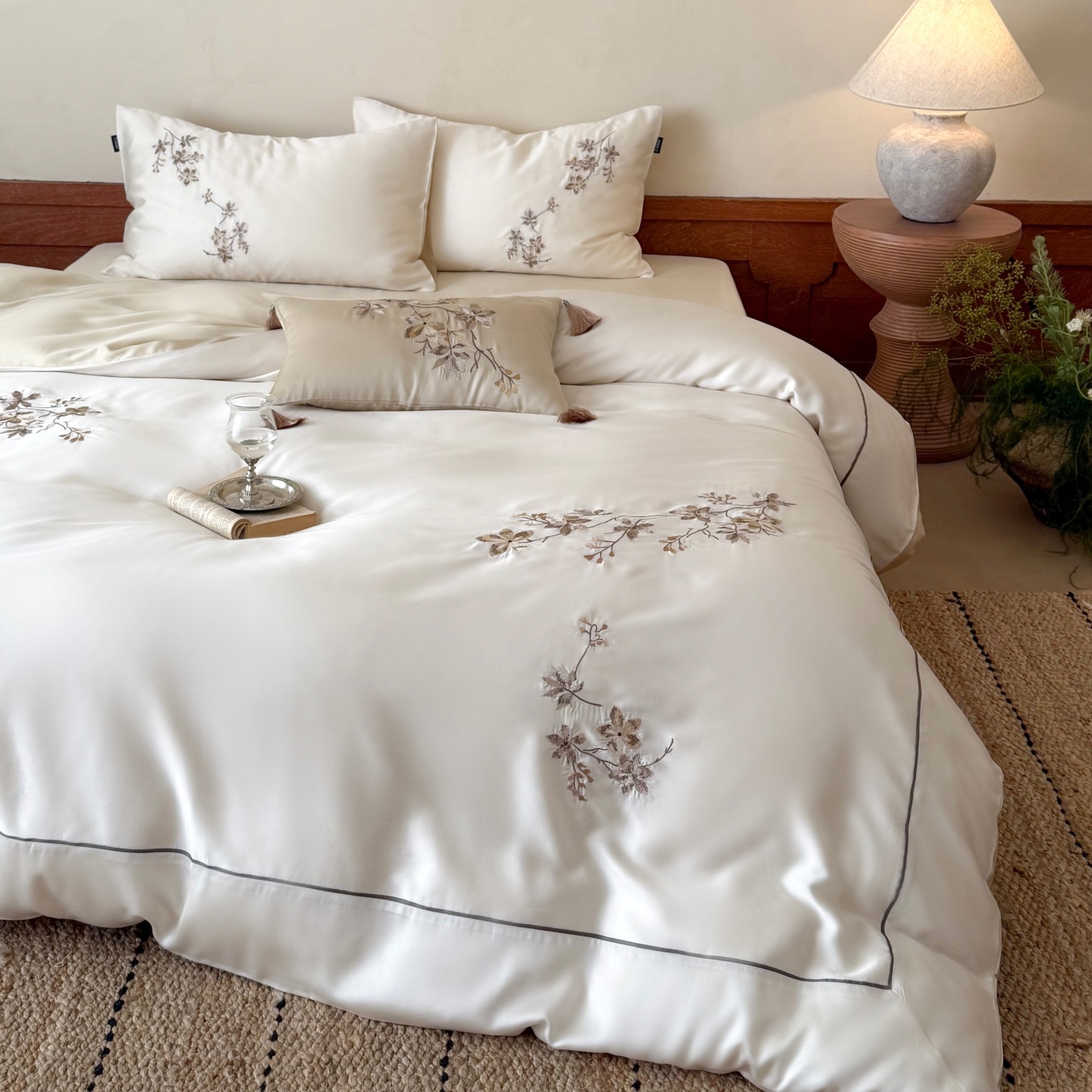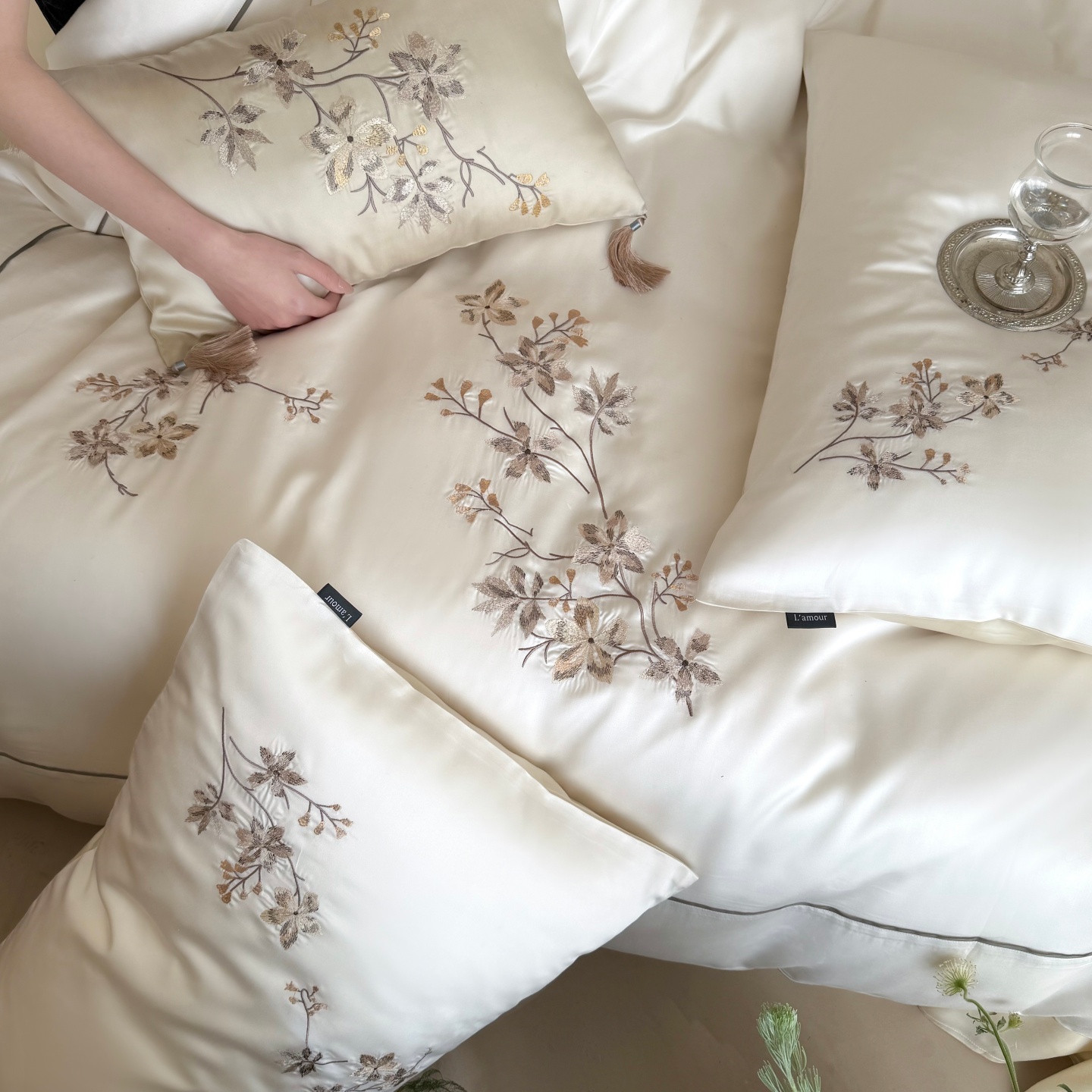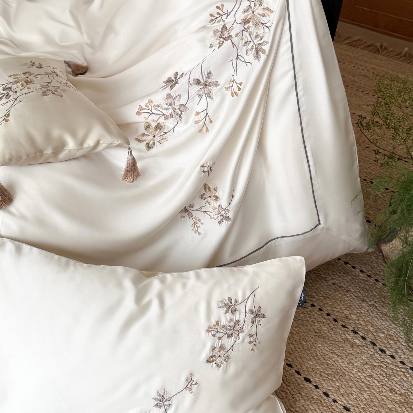 当前位置: 91家纺网 > 商品网购 > 床品套件 > 四件套 > 莱赛尔四件套 > (总)鹿班家居 2026春夏新款60S兰精天丝刺绣系列四件套-云山晓(标准会员-20元)