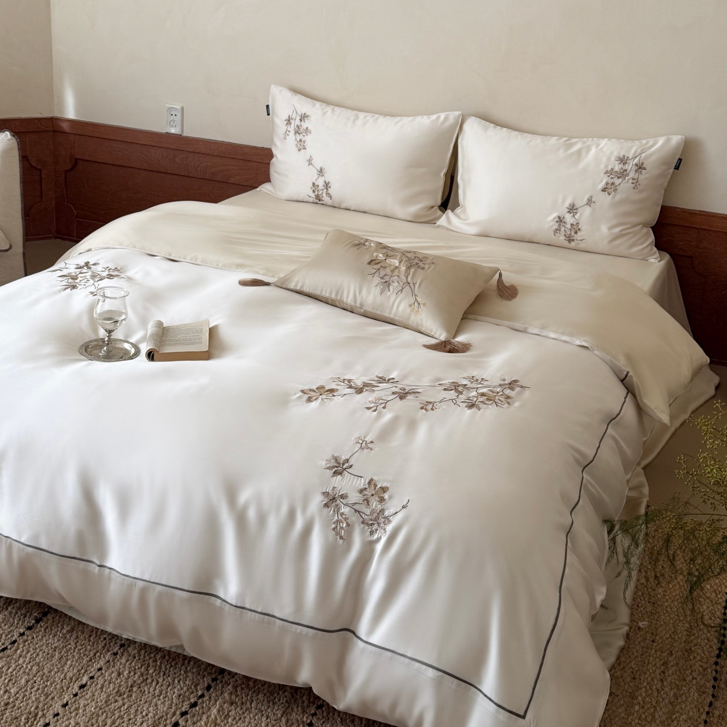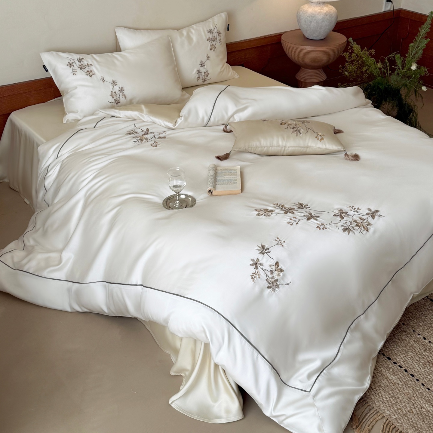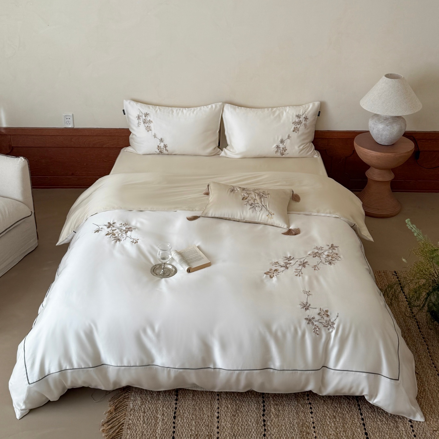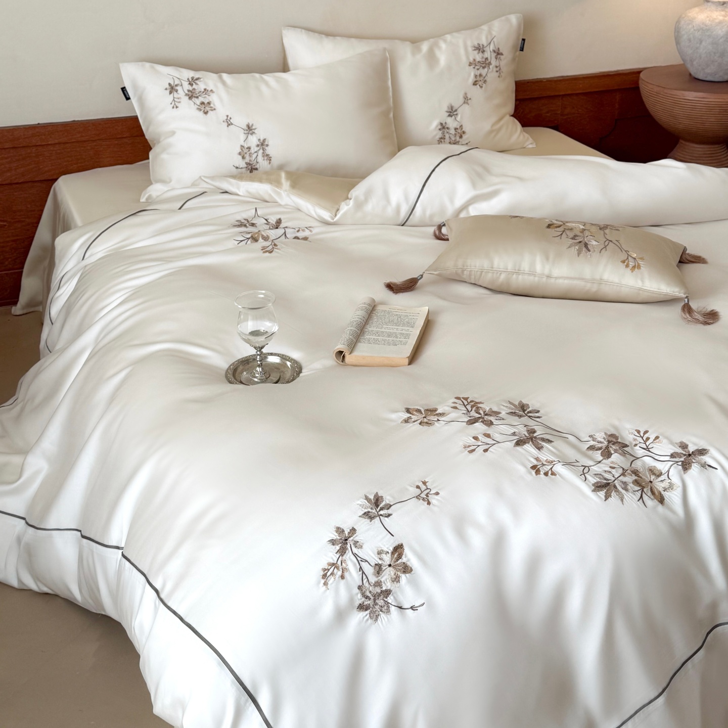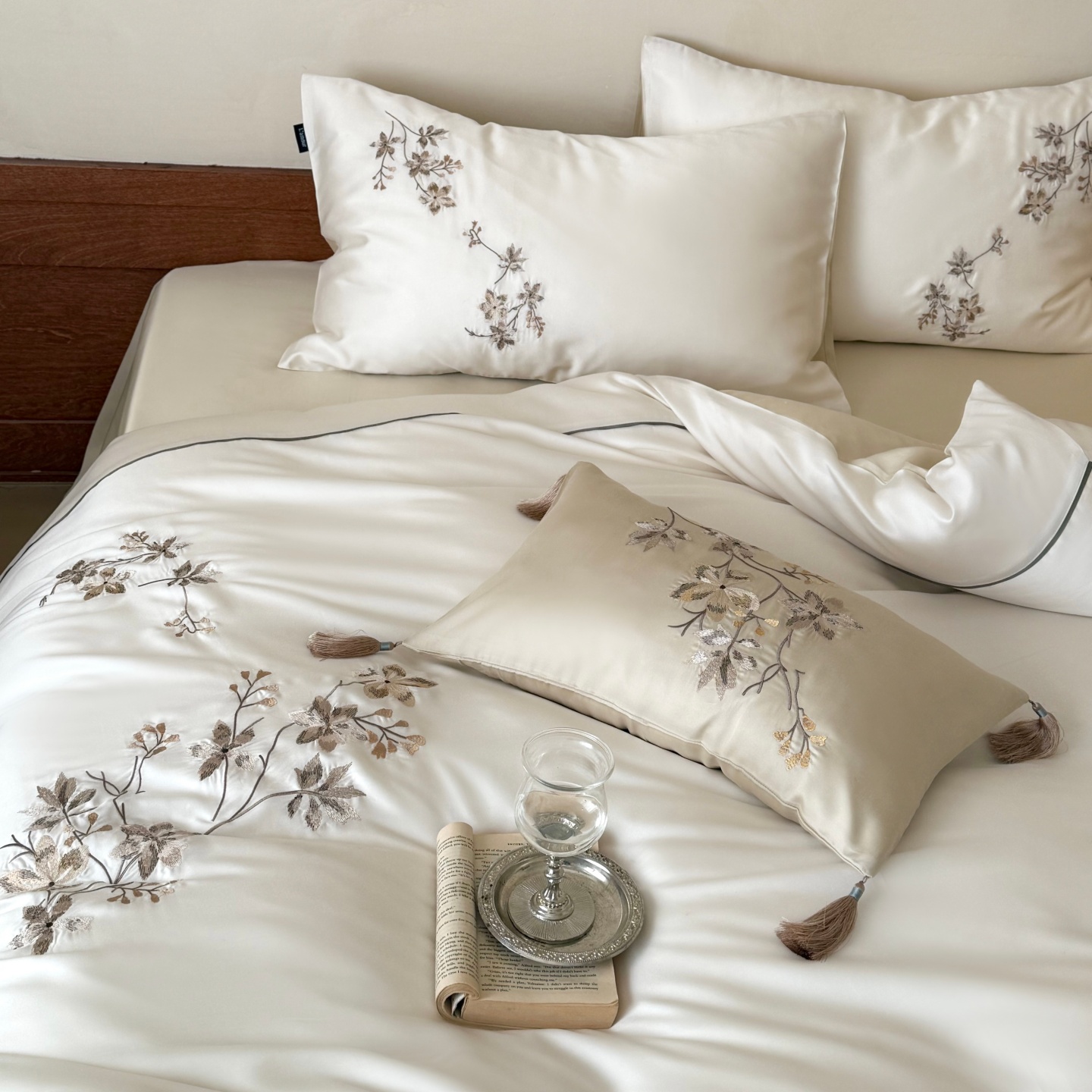 当前位置: 91家纺网 > 商品网购 > 床品套件 > 四件套 > 莱赛尔四件套 > (总)鹿班家居 2026春夏新款60S兰精天丝刺绣系列四件套-云山晓(标准会员-20元)