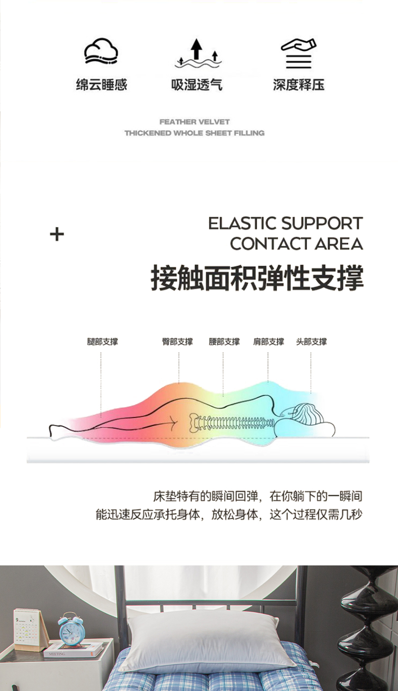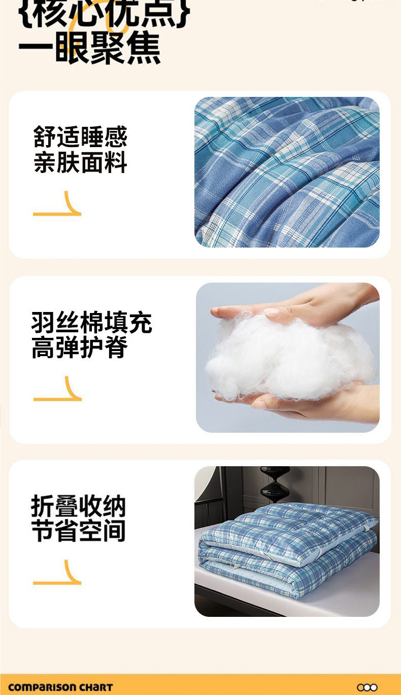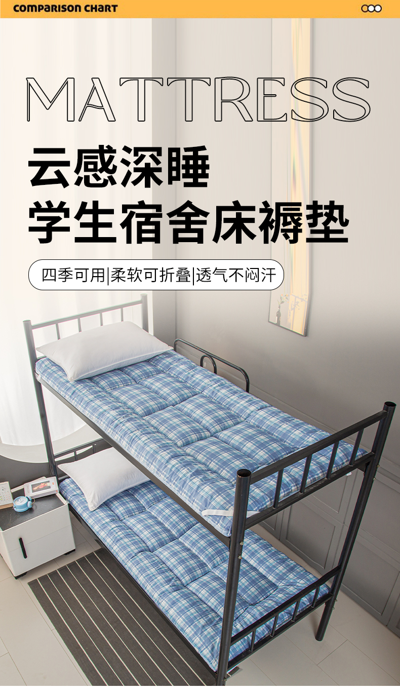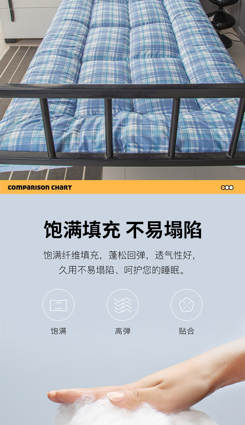 商品名称:友承家纺 A类木棉2026新款加厚床垫软垫褥子家用卧室租房专用学生宿舍单人垫被床褥垫榻榻米双人垫子 蓝小格
