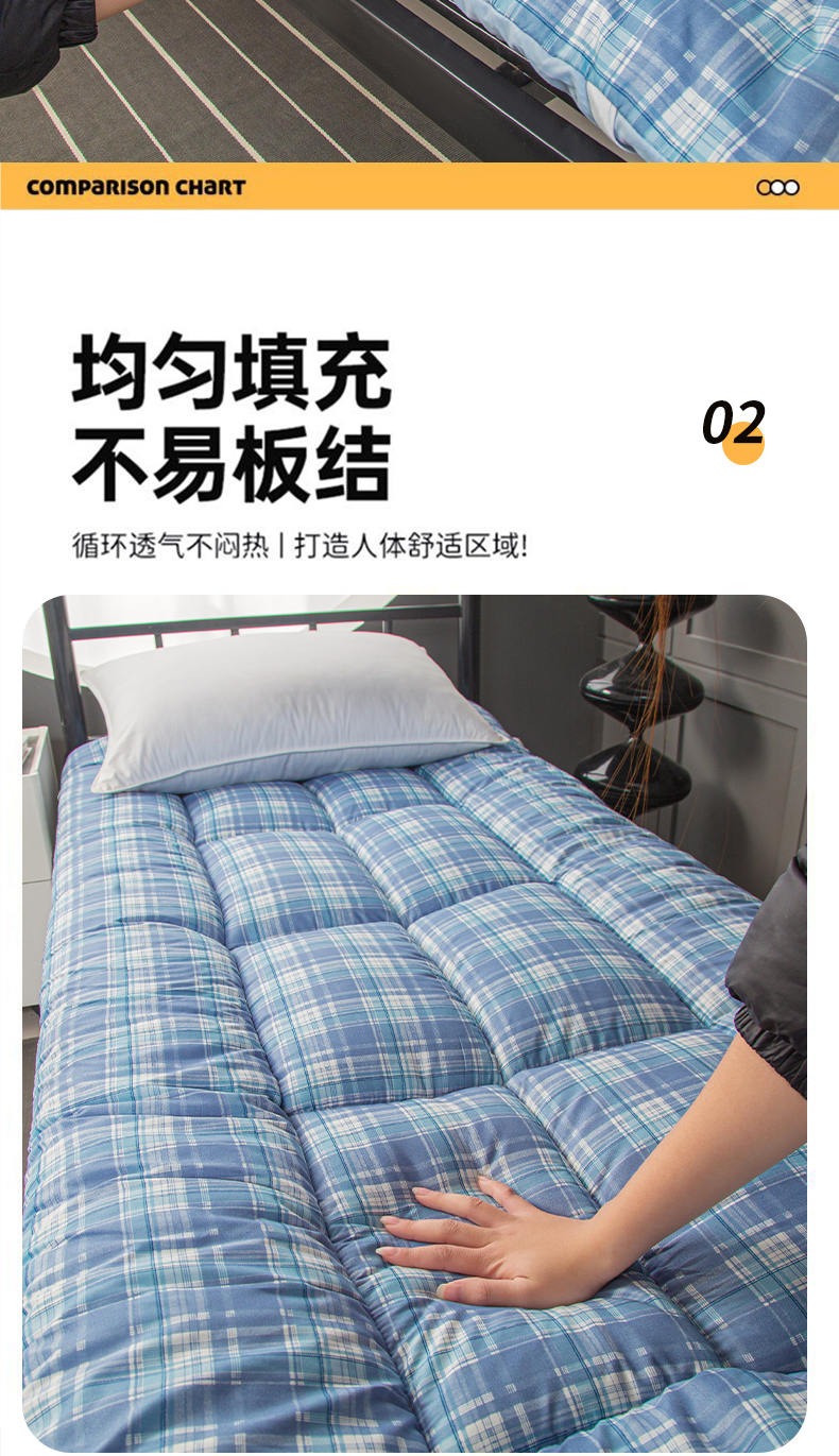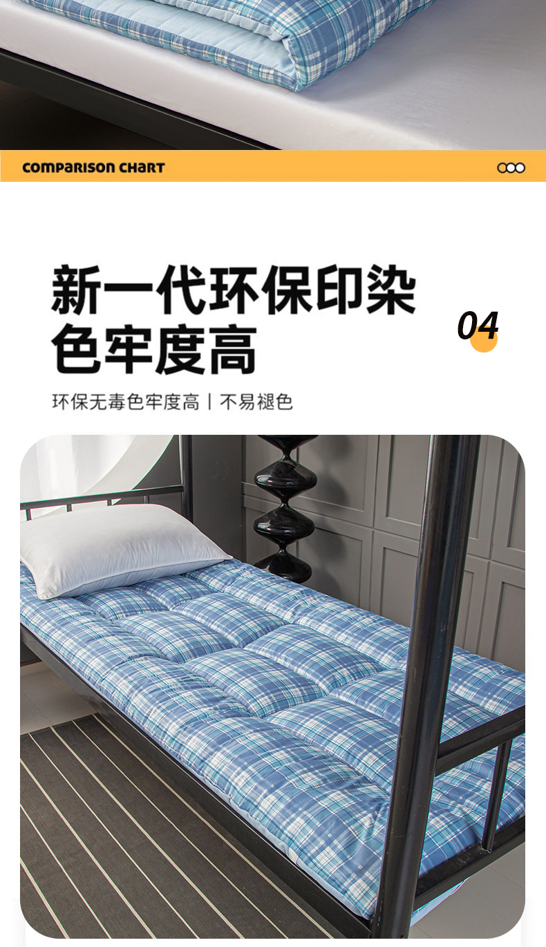 (总)友承家纺 A类木棉2026新款加厚床垫软垫褥子家用卧室租房专用学生宿舍单人垫被床褥垫榻榻米双人垫子,无印蓝,炫彩格,中意格,蓝小格