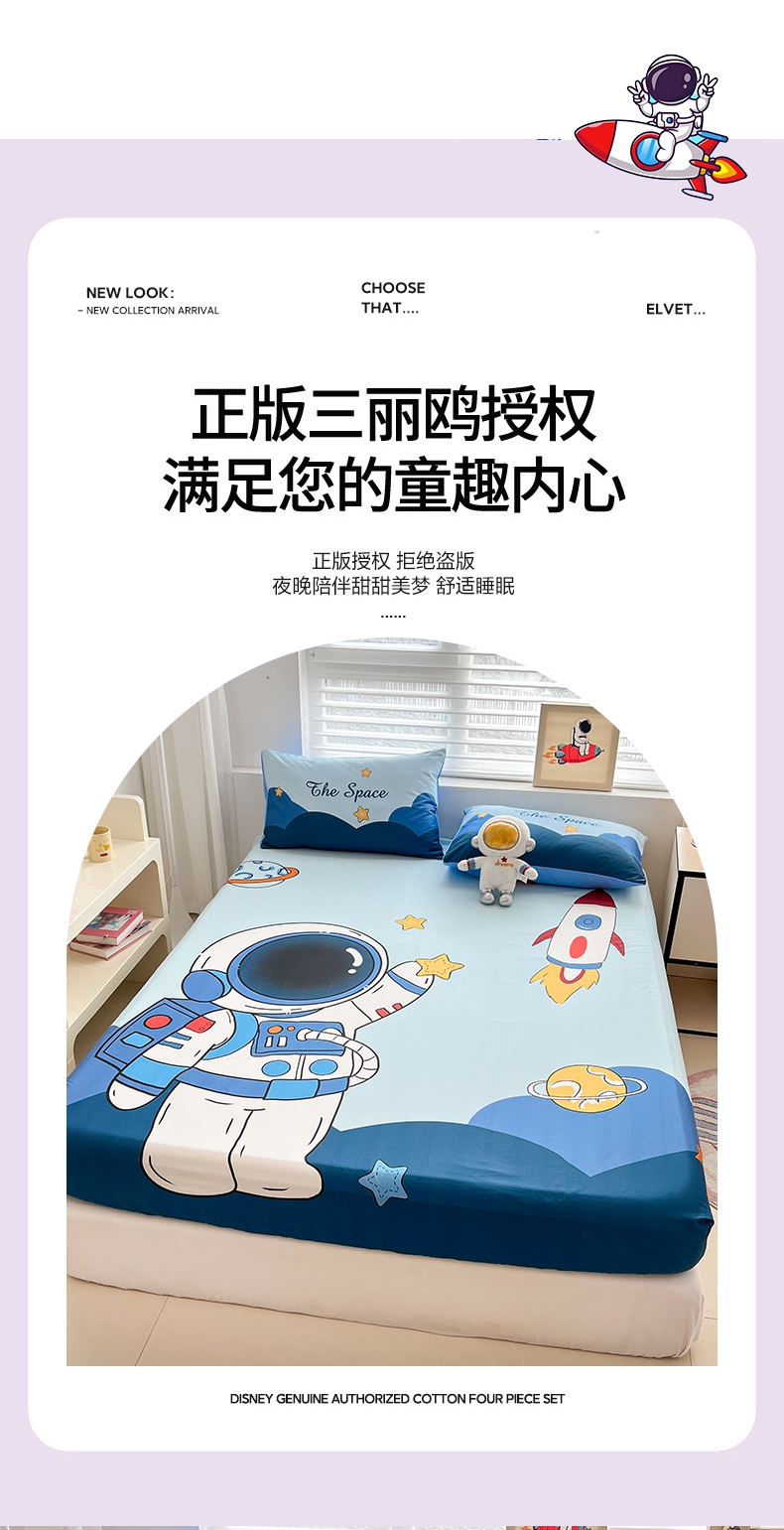 • 91家纺网 家纺一手货源 找家纺 孩子王家纺 2026新款卡通全棉纯棉专版太空人印花单床笠床笠单件单品床笠 宇航火箭