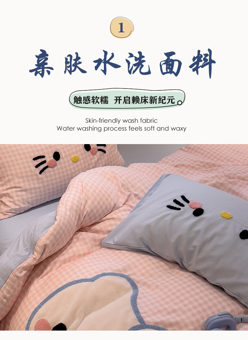 当前位置: 91家纺网 > 商品网购 > 床品套件 > 四件套 > 水洗棉四件套 > 曼谷家纺 2026年 水洗棉兔毛贴布绣萌小甜四件套被套床单学生双人 萌小甜-粉小格兰