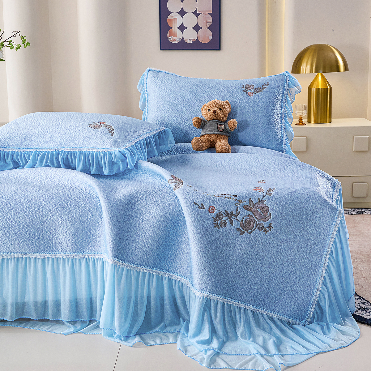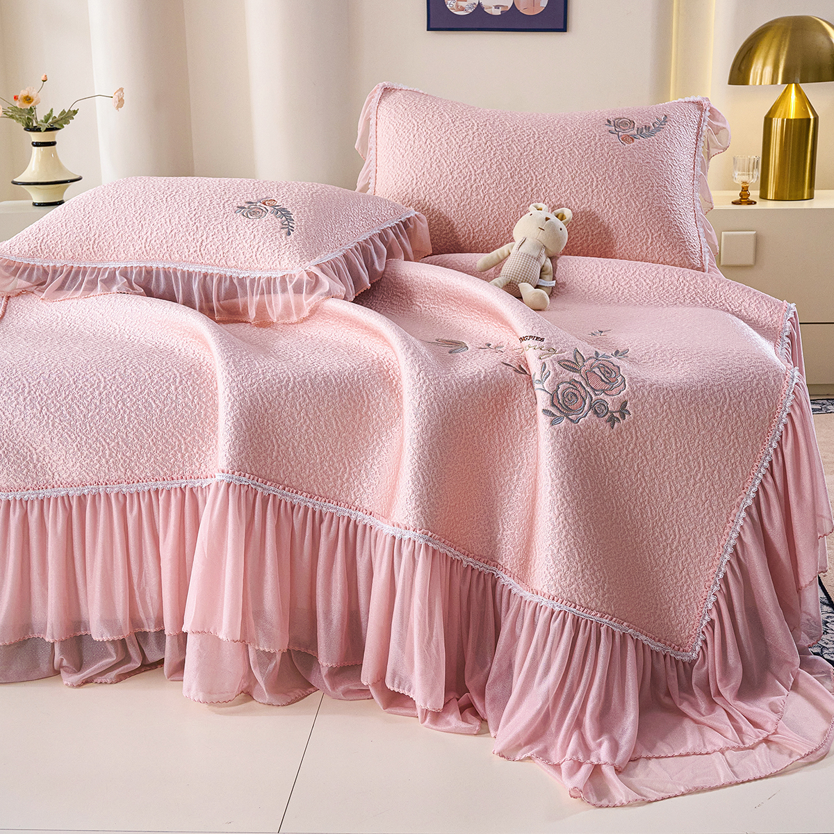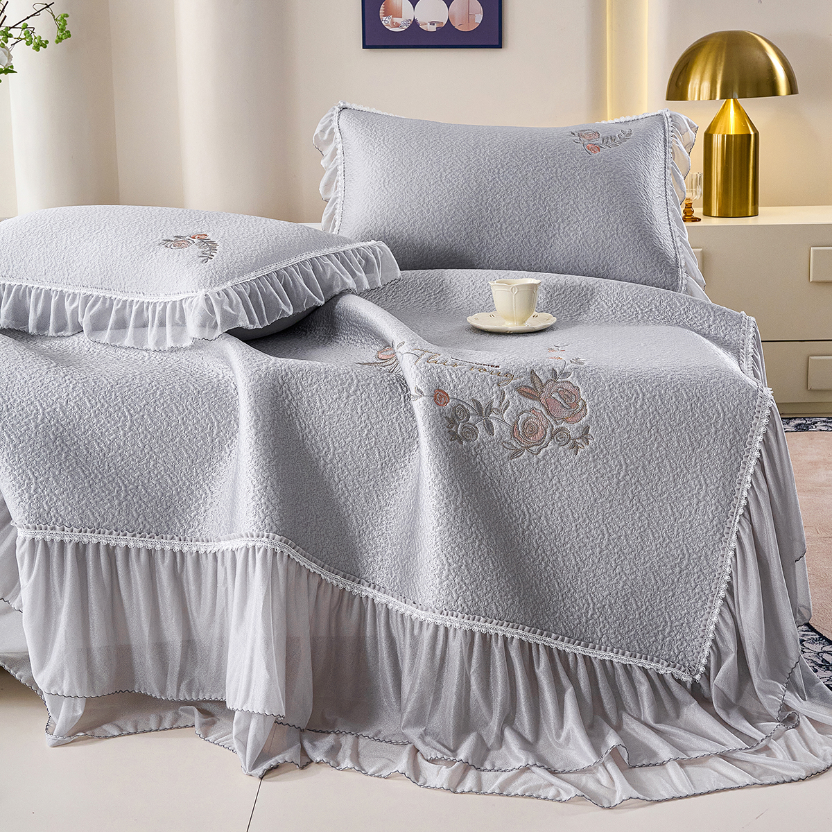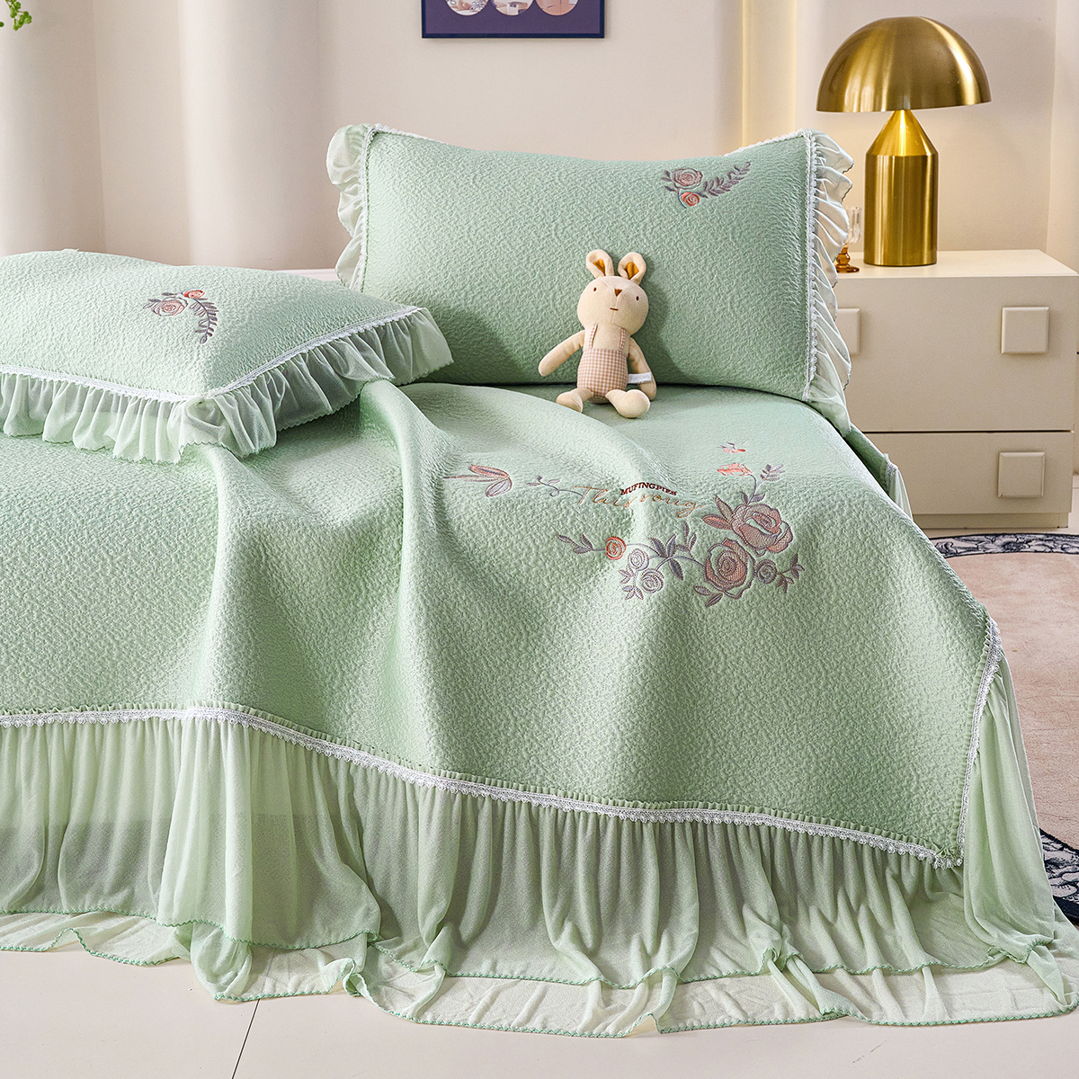 (总)梵克保罗 2026春夏新款雪纺床盖夏被四件套单夏被床盖三件套,奶茶色,嫩芽绿,浅米色,仙气紫,玉芙蓉
