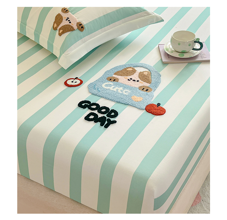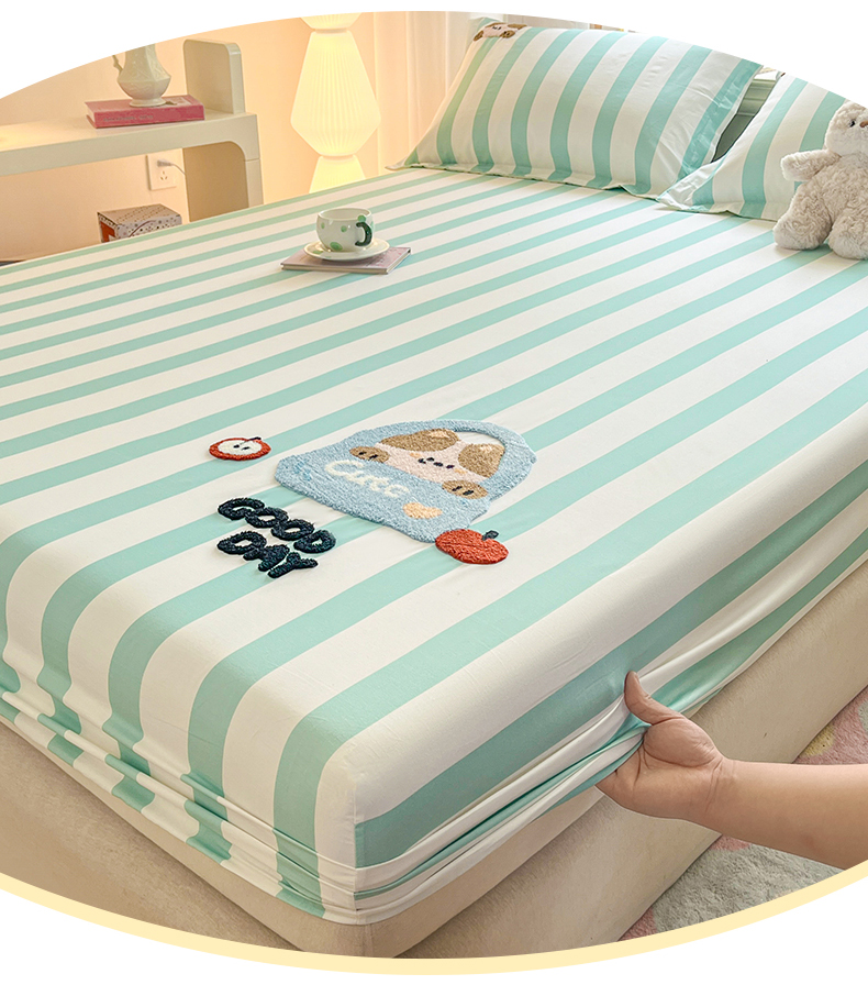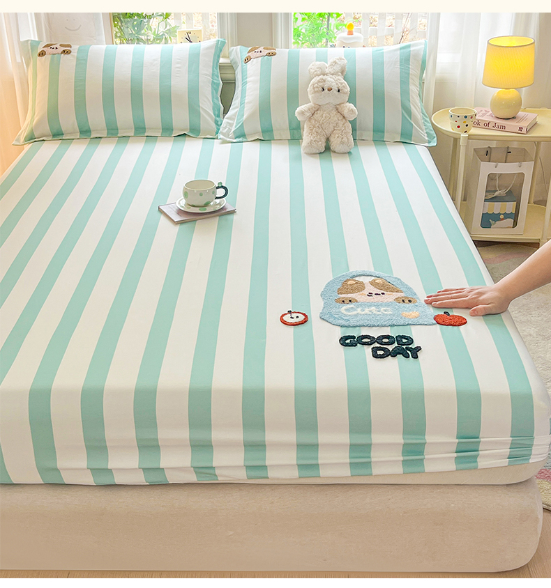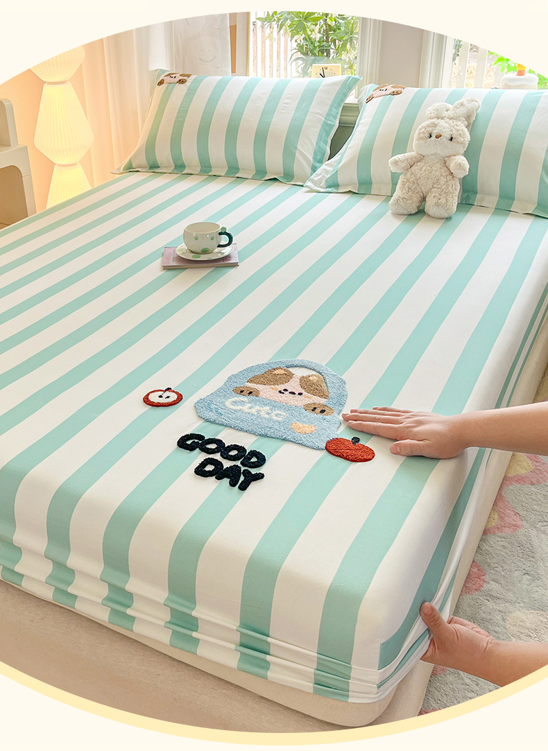 笙意家纺 2026新款50S全棉纯棉毛巾绣单品床笠床笠单件 海盐萌宠
