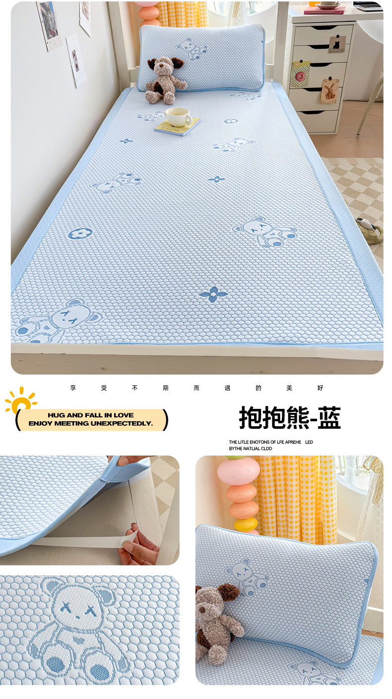 • 91家纺网 家纺一手货源 找家纺 (总)家品罗兰 2026新款夏季A类印花冰豆豆凉席三明治透气网冰丝凉席家用双人冰丝席床单-学生床,巴比兔,抱抱熊,饼干熊,海洋世界,卡皮巴拉,蘑菇乐园,甜甜圈,兔宝贝,维尼熊,小企鹅,熊猫家园,叶语
