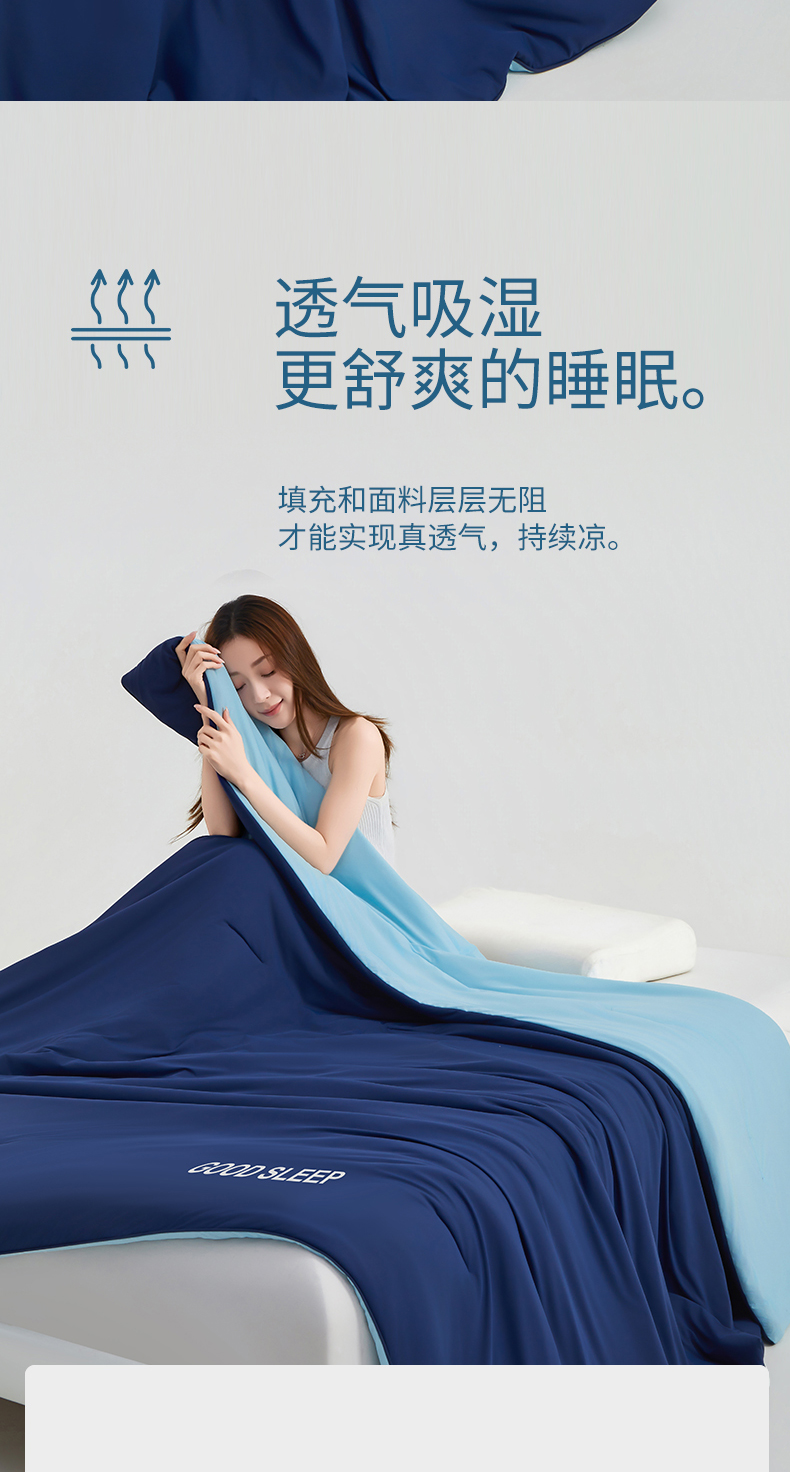• 91家纺网 家纺一手货源 找家纺 优雅星家纺 2026新款凉感丝深睡眠夏被空调被夏凉被薄被子被芯某朵同款 深睡蓝