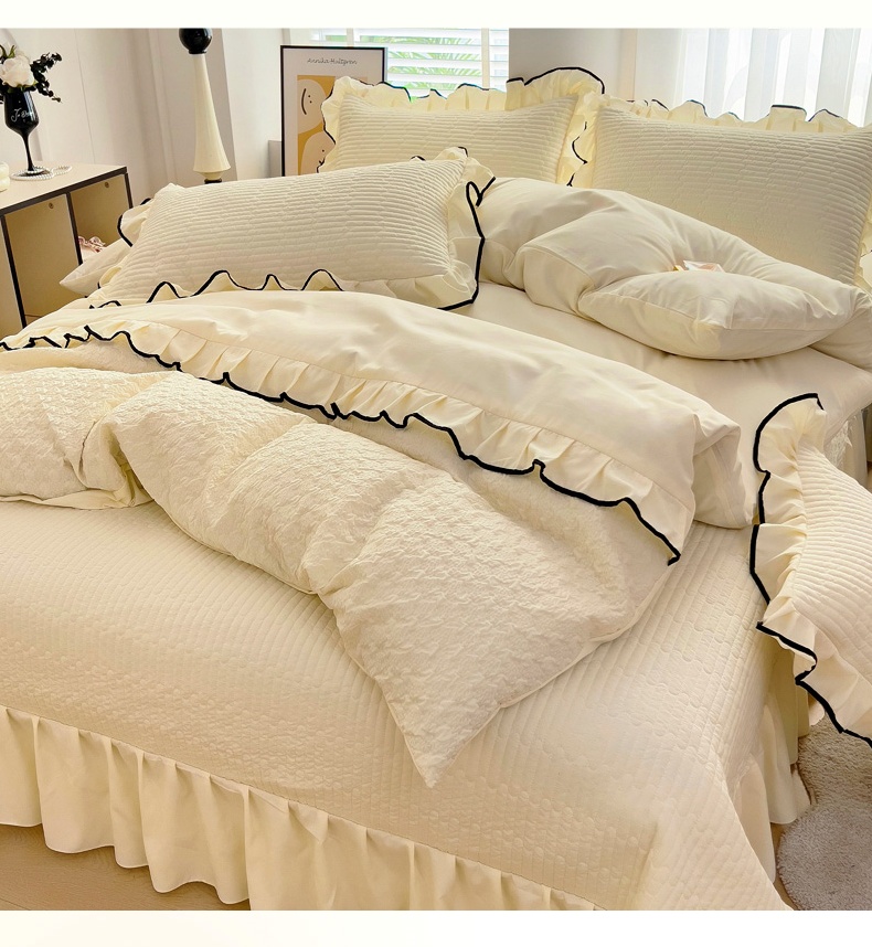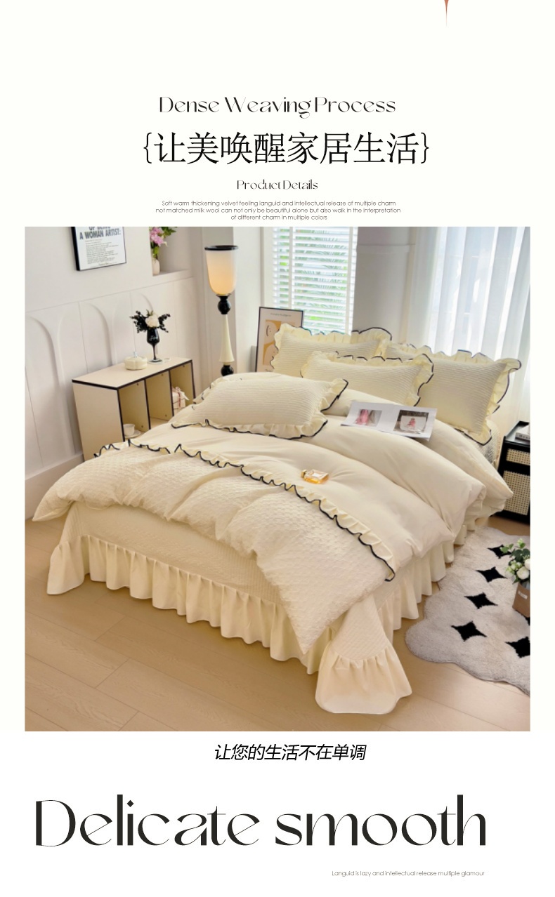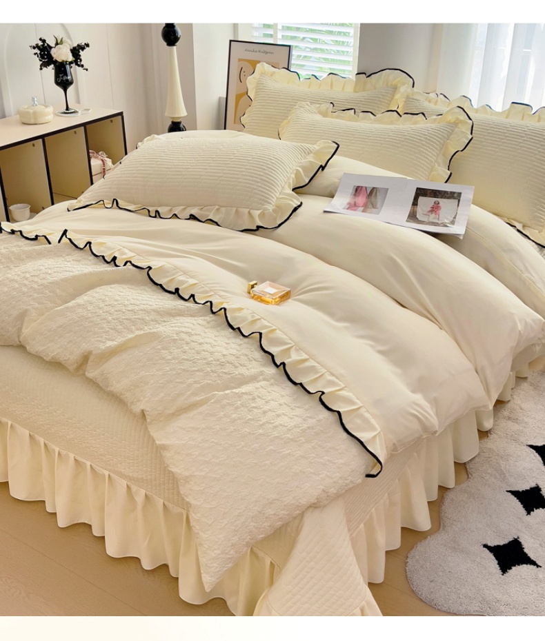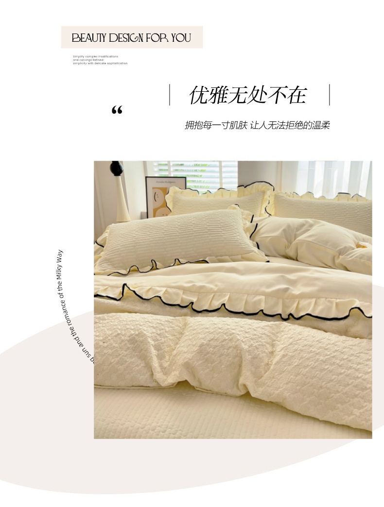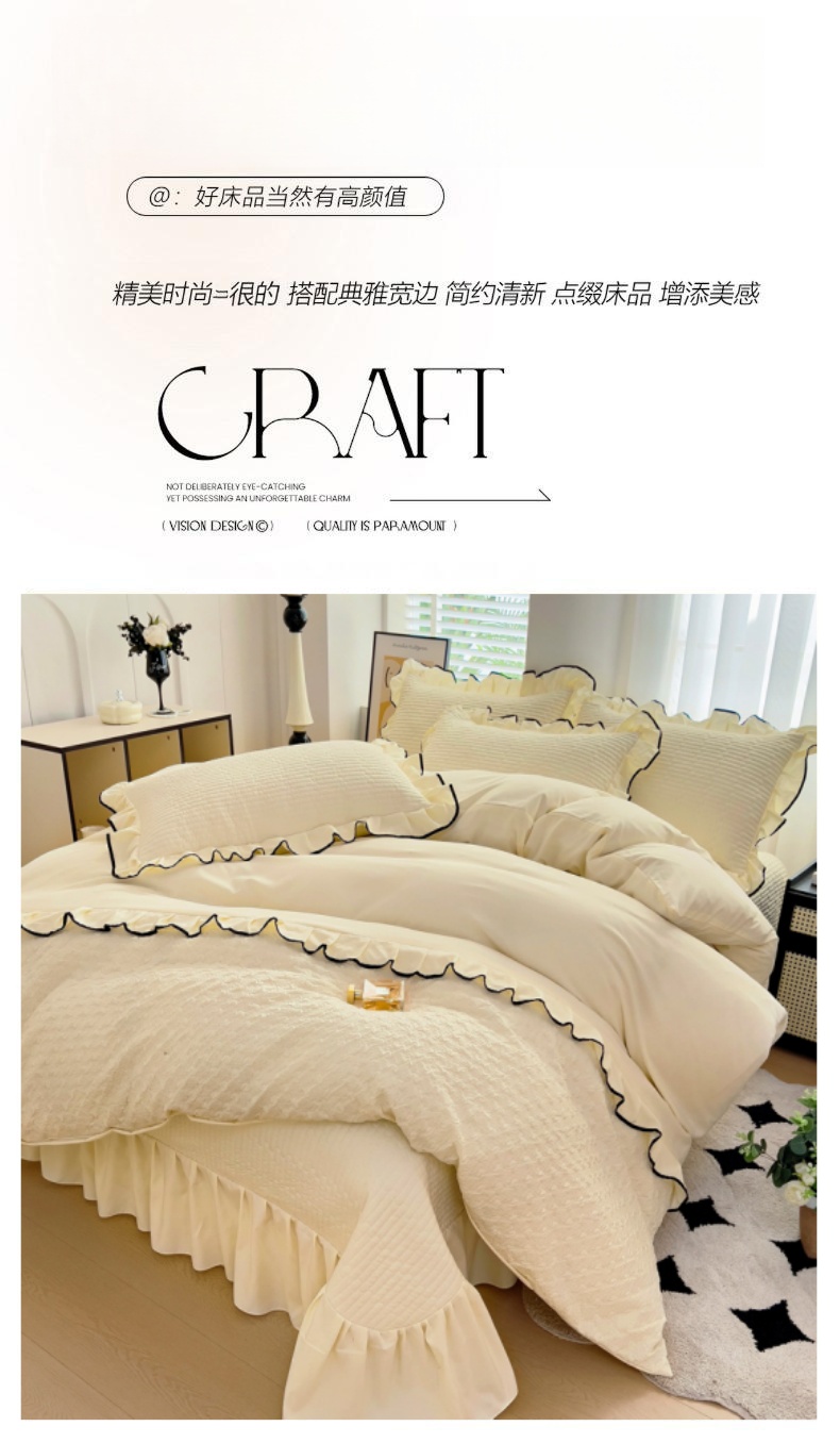 (总)畅畅家纺 2026新款春夏高档轻奢韩版提花花边床盖四件套水洗真丝冰丝套件,花边-粉色,花边-米白色,花边-蓝色,花边-浅玉