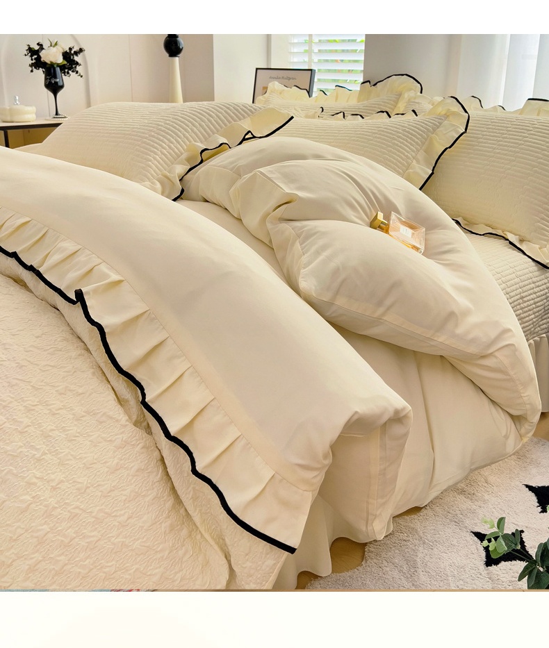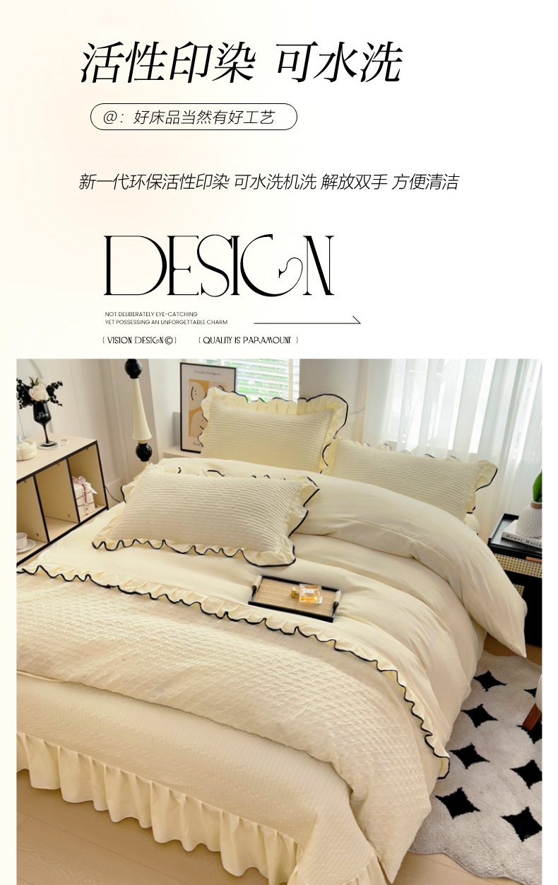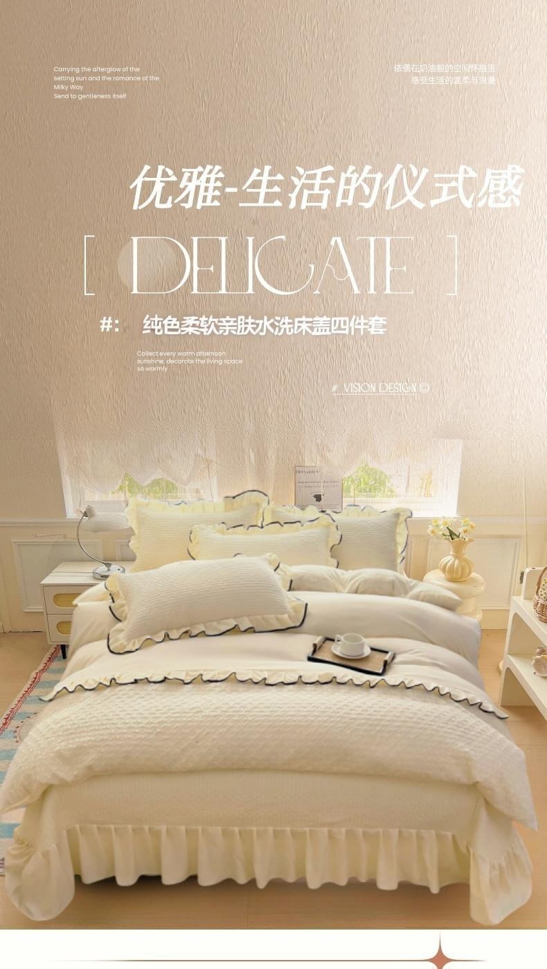 畅畅家纺 2026新款春夏时尚柔软水洗棉床盖被套四件套 米白