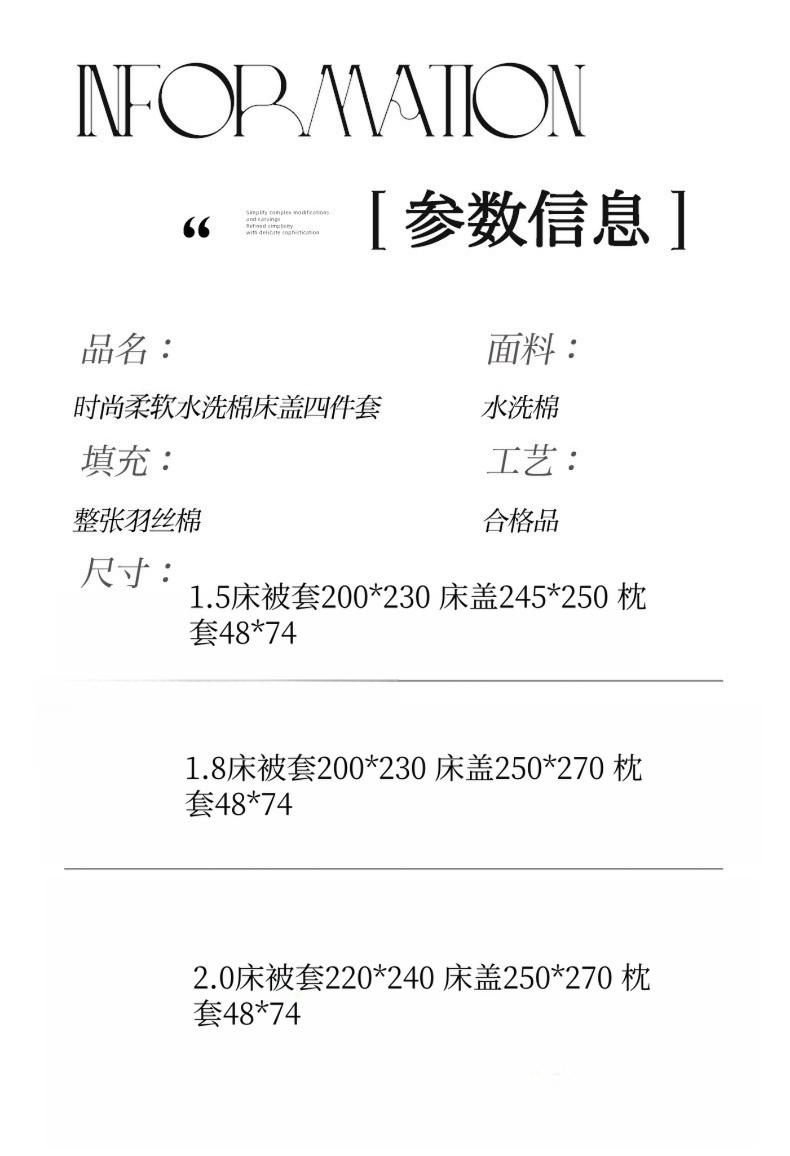 商品名称:畅畅家纺 2026新款春夏时尚柔软水洗棉床盖被套四件套 米白