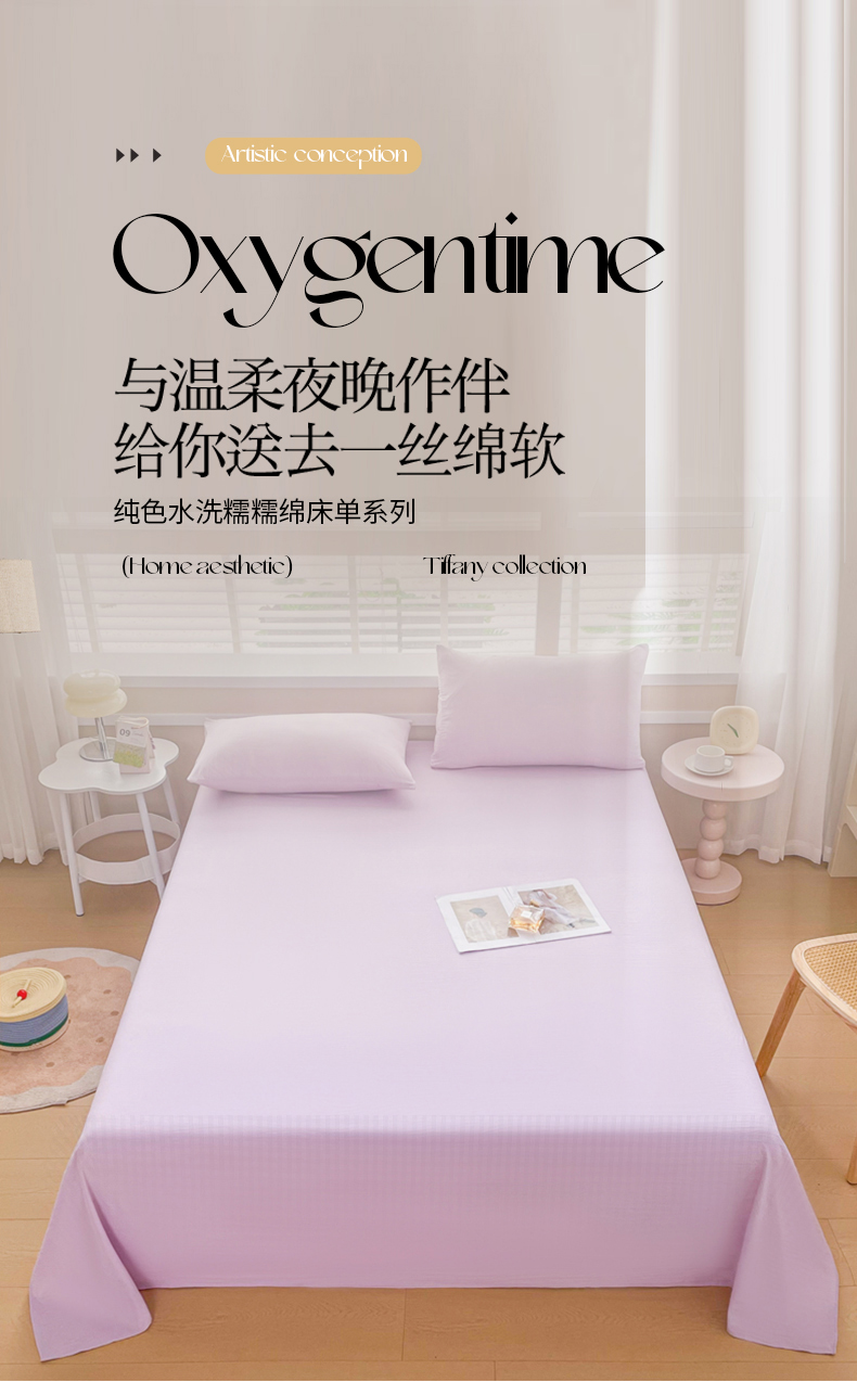 (总)牛魔王家居 2026新款糯糯棉床单枕套纯色床单,黛紫,灰,卡色,抹茶绿,嫩黄,浅紫,碳灰,天蓝,樱花粉,珍珠白