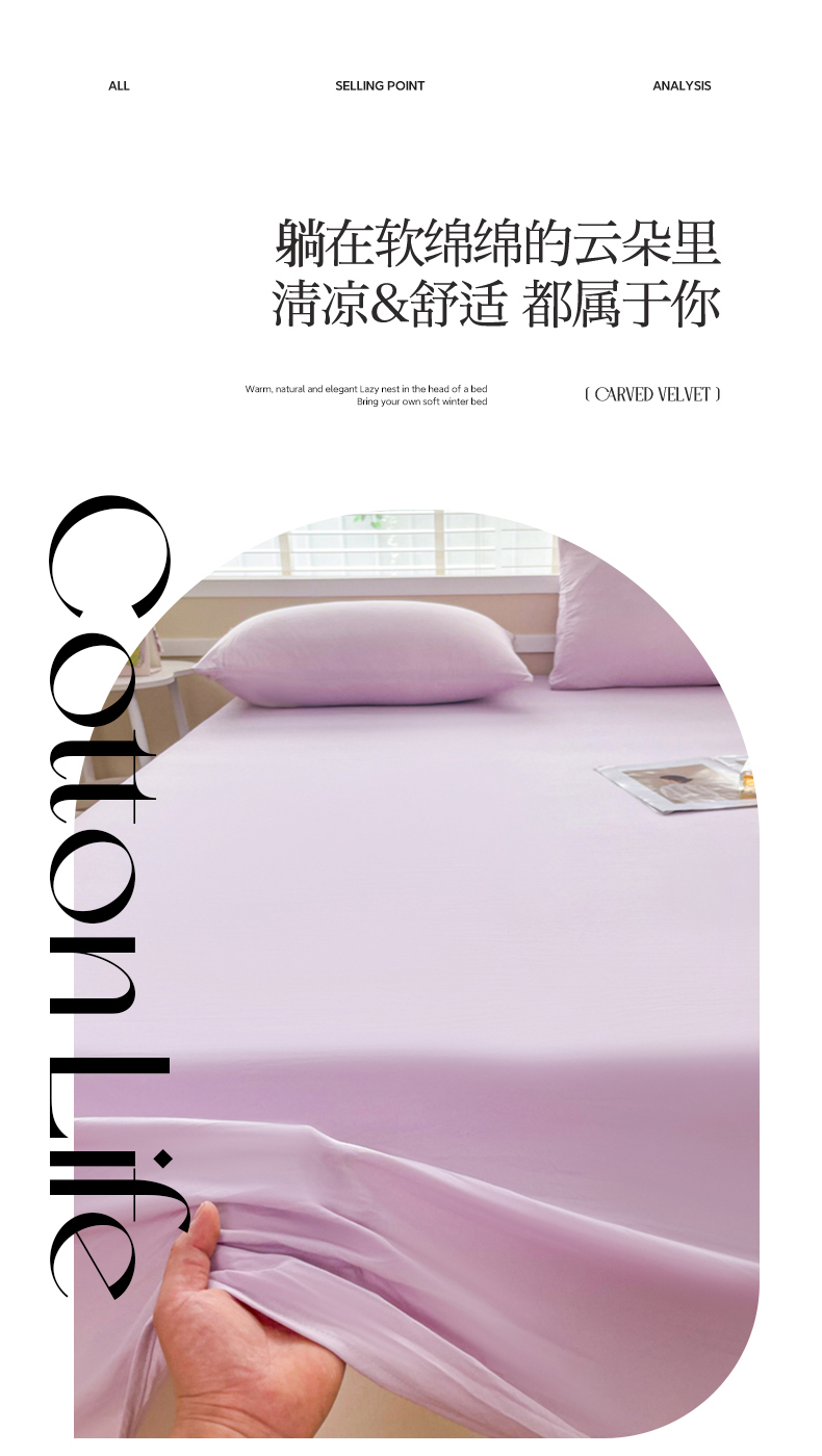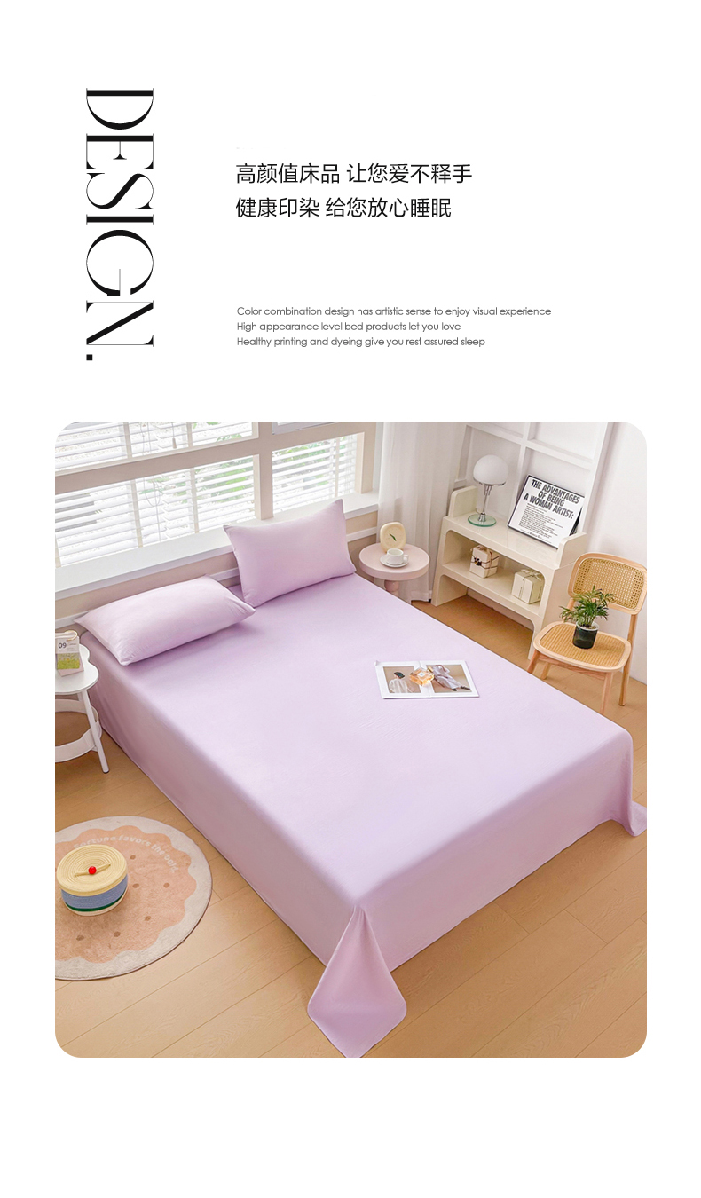 • 91家纺网 家纺一手货源 找家纺 牛魔王家居 2026新款糯糯棉床单枕套纯色床单 浅紫