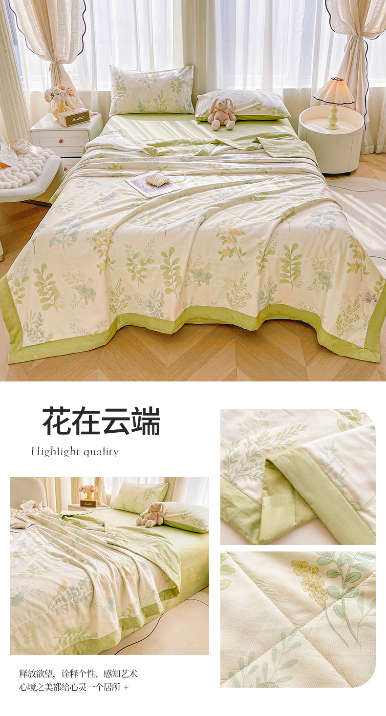 • 91家纺网 家纺一手货源 找家纺 格子铺 2026新款全棉纯棉印花棉花夏被夏凉被空调被 花团锦簇绿