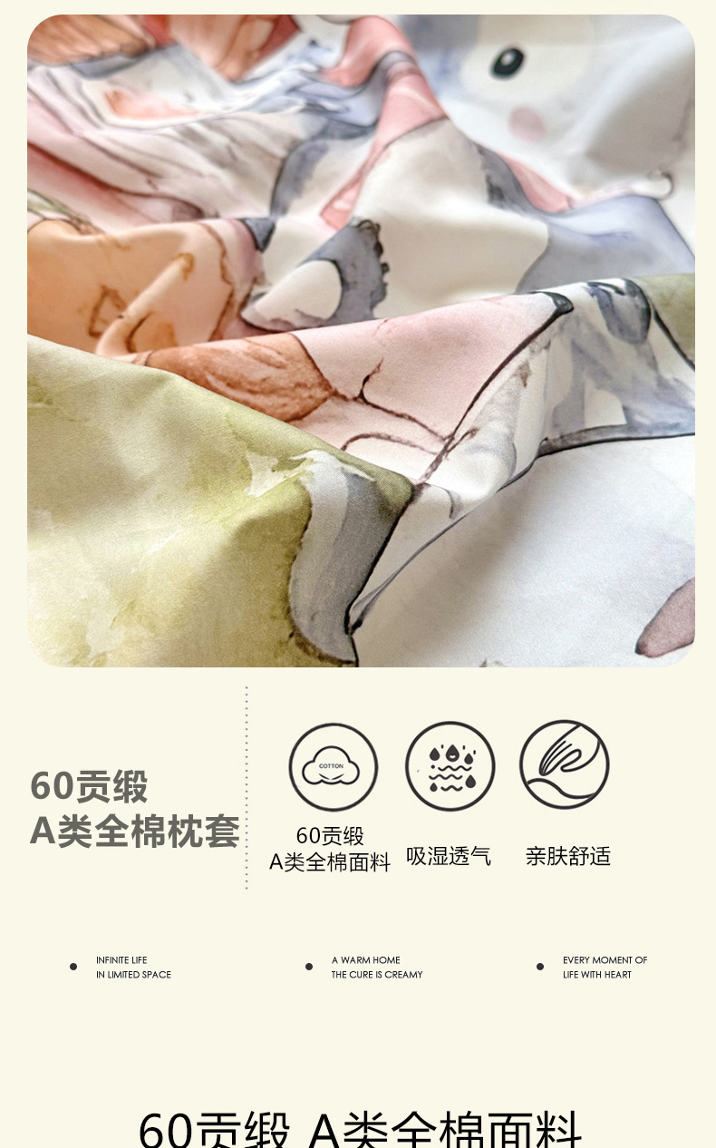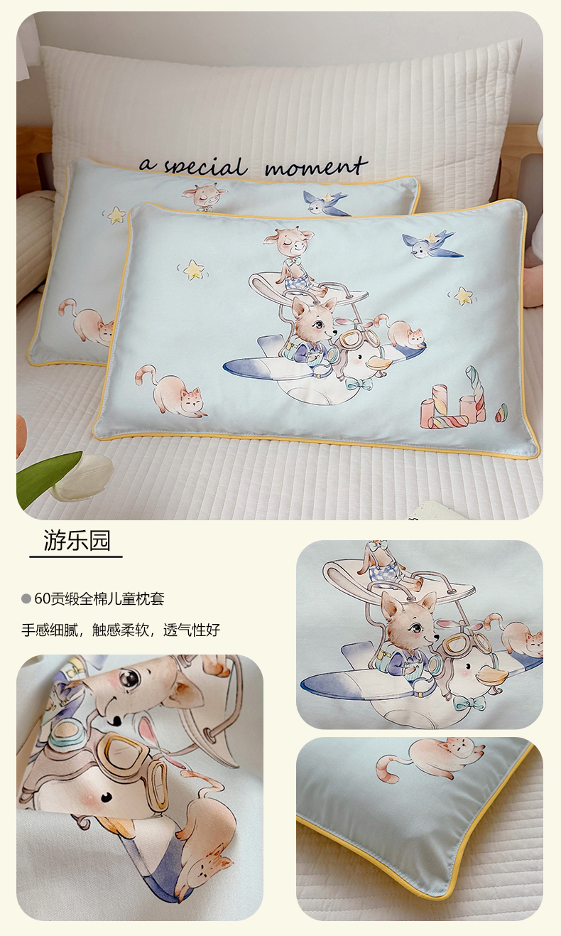 萌宝家纺 2026新款A类60S全棉纯棉儿童枕套大版宝宝枕头枕芯 游乐园