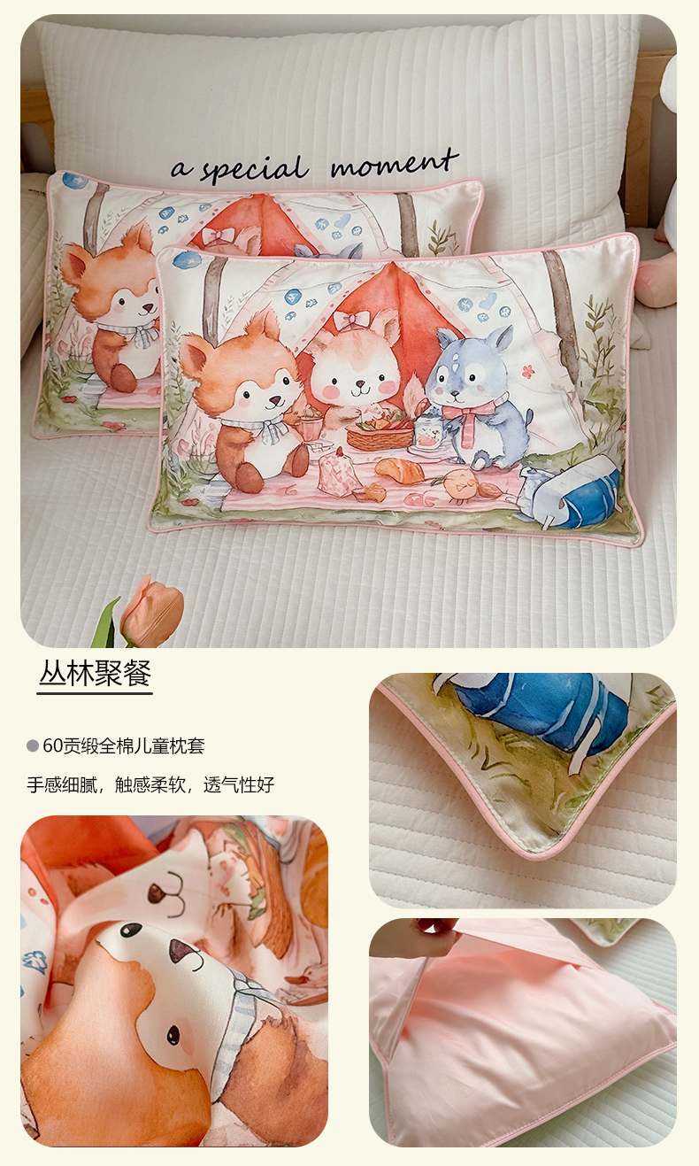 (总)萌宝家纺 2026新款A类60S全棉纯棉儿童枕套大版宝宝枕头枕芯,组合图仅供展示不可下单,丛林聚餐,汽车旅行,天鹅湖,甜梦蛋糕,摇篮兔子,游乐园,云月绮梦