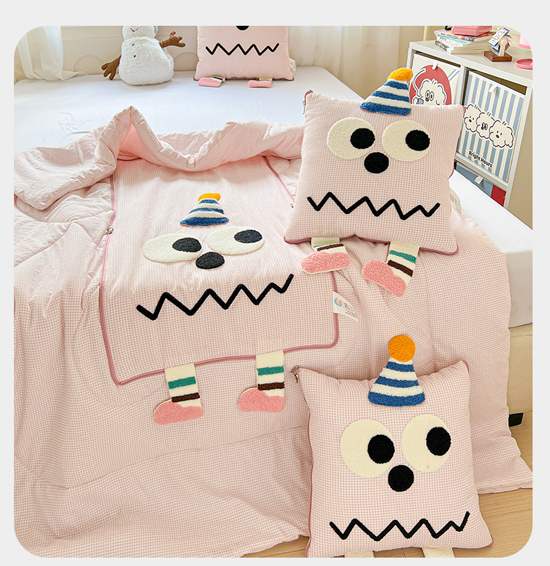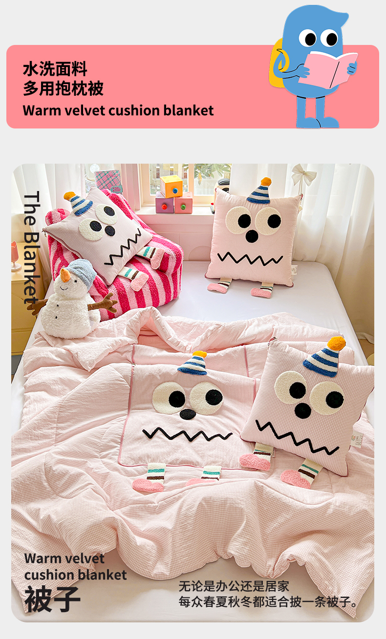 (总)古本家居 2026新款四季款水洗小星人抱枕被,四季小星人绿格,四季小星人粉格,四季小星人黄格,四季小星人蓝格