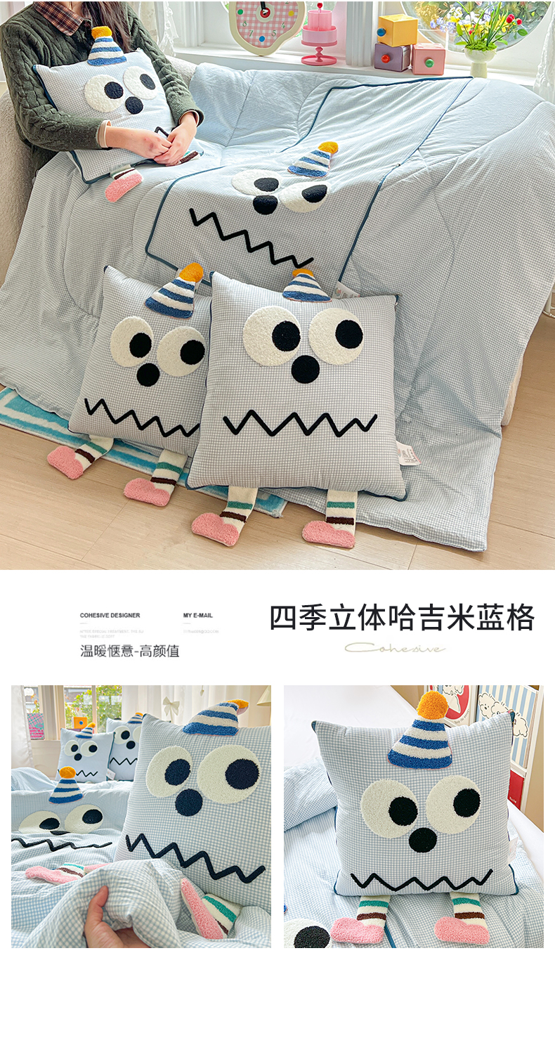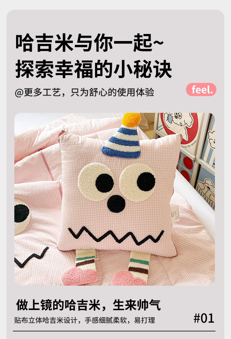 商品名称:古本家居 2026新款四季款水洗哈吉米抱枕被 四季立体哈吉米粉格