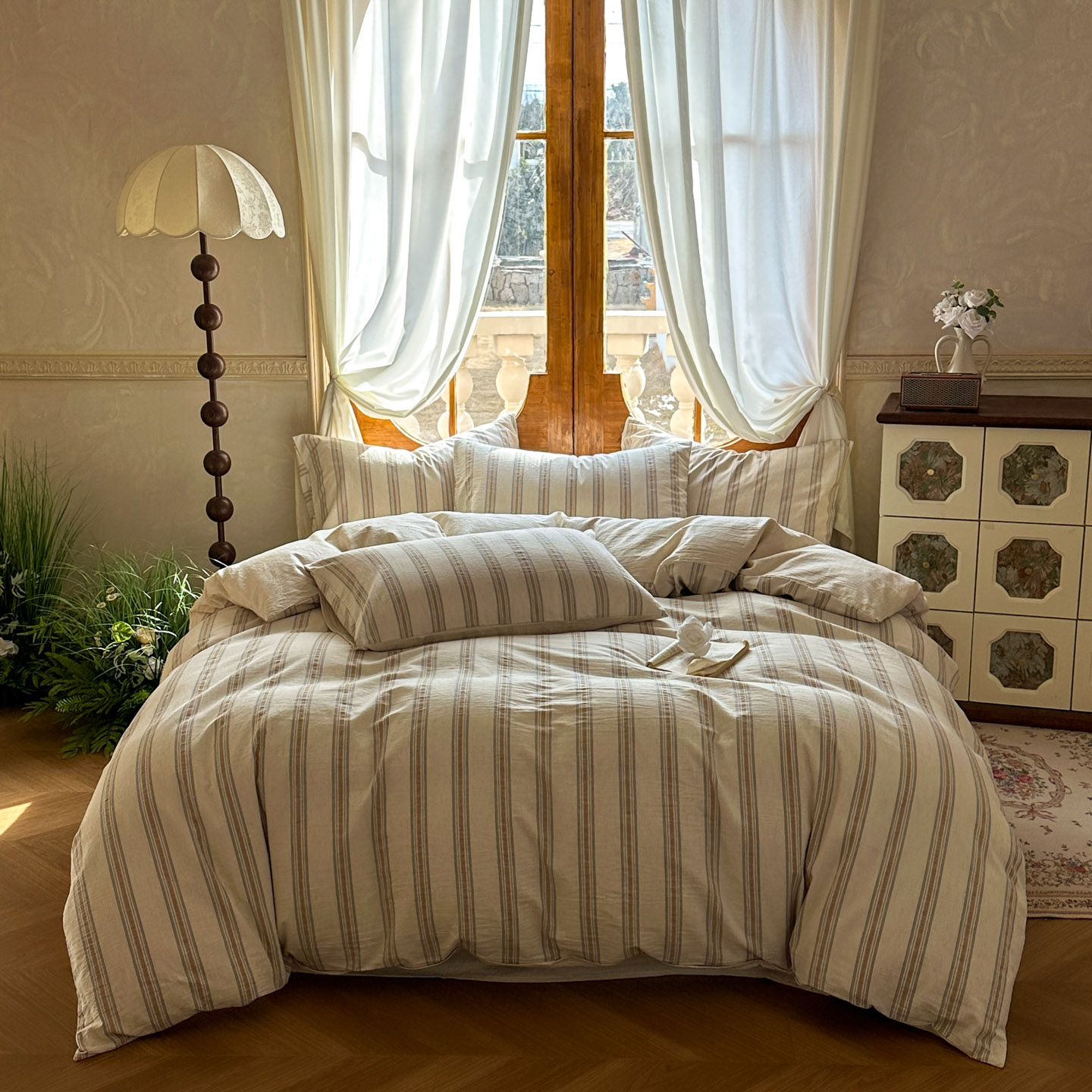 (总)田野 2026新款全棉棉麻四件套-条纹系列,禾风 粉绿,禾风 卡其,禾风 兰灰,禾风 米驼,禾风 紫条