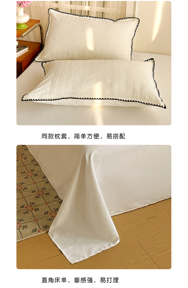 仟网汇 2026新款泡泡纱三角针四件套--纯色系列 奶油黄