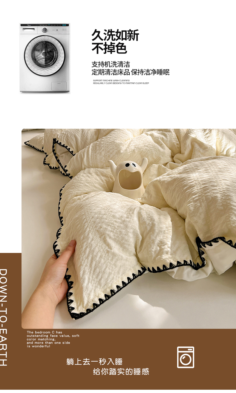 商品名称:仟网汇 2026新款泡泡纱三角针四件套--纯色系列 奶油黄